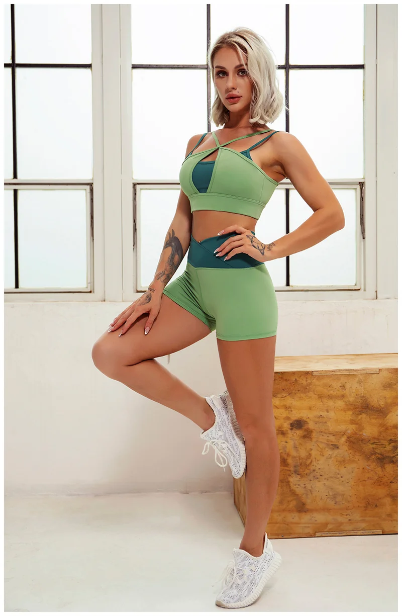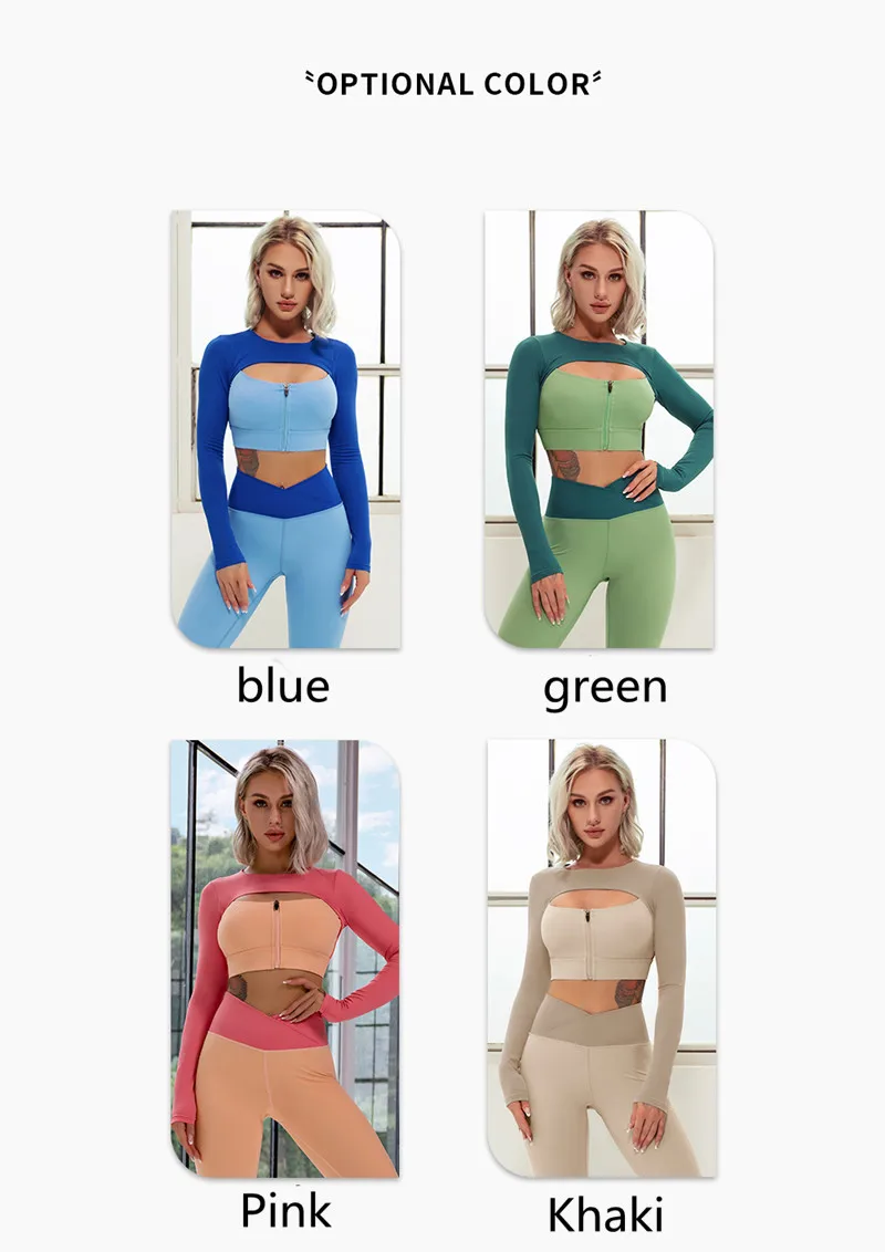 Бесшовный Женский комплект для йоги, спортивный комплект, короткий топ с длинным рукавом, леггинсы с высокой талией, одежда для бега и фитнеса, спортивная одежда для женщин