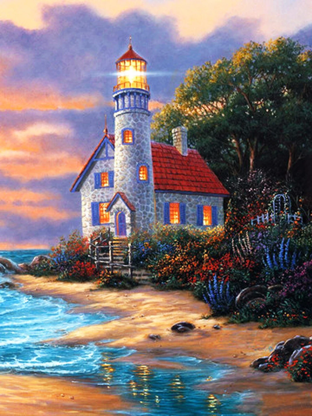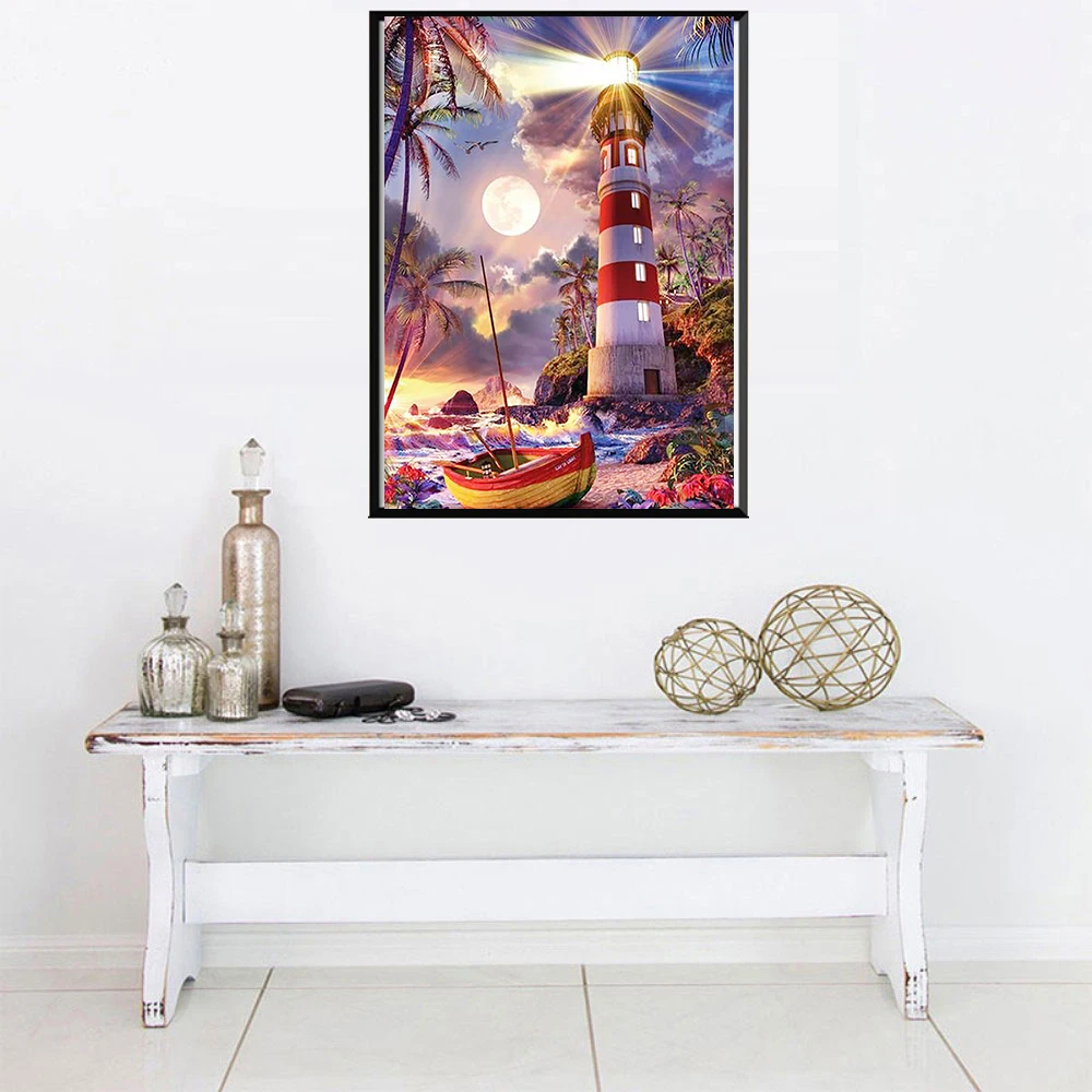 5D алмазная живопись закат и берег, алмазная вышивка, пейзаж, маяк, мозаика, Набор для вышивки крестиком, украшение для дома, подарок