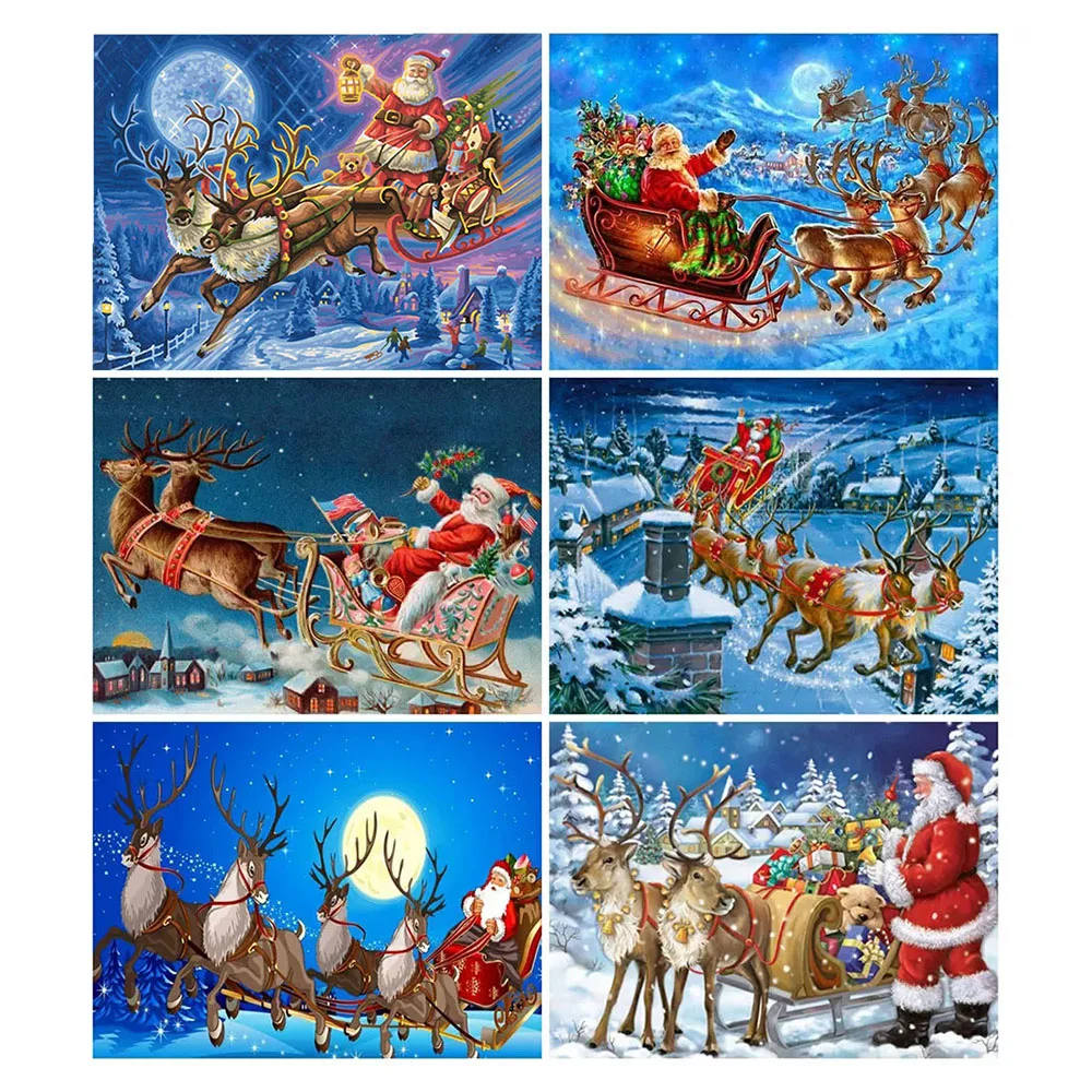 Алмазная 5d картина сделай сам, мультяшная вышивка, квадратная круглая мозаика с рисунком Санта Клауса, лося, вышивка крестиком, ручная работа, хобби, подарок