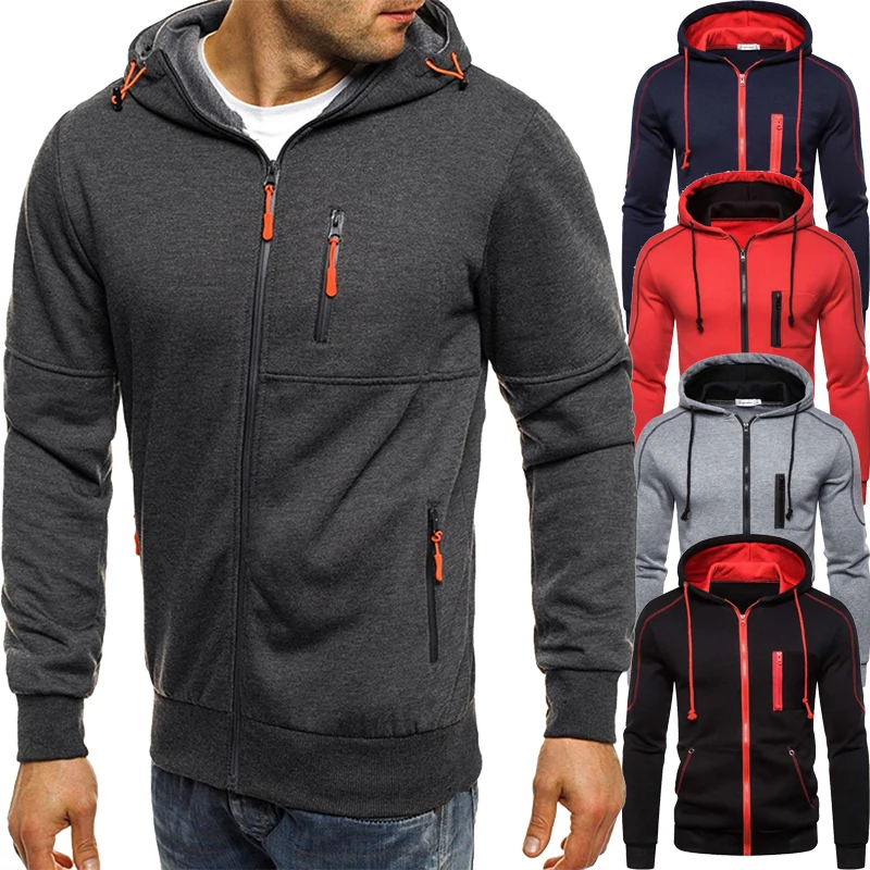 Мужская толстовка на молнии, однотонная спортивная одежда с капюшоном, Повседневная Базовая уличная одежда, повседневные мужские толстовки, свитшоты с длинным рукавом