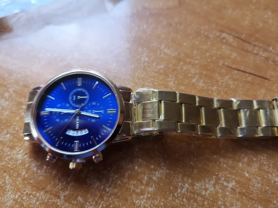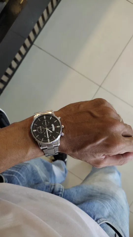 Самые натуральные детские часы: бутафорные две боковые кнопки и три маленькие стрелки на общем циферблате. :) Подозрительный браслет...Он, случайно, не из фольги? :) В описании написано: ...автоматическая настройка времени... :) Так понимаю с помощью одной из рук?! :))) С другой стороны, за такие деньги, давольно не плохая бутафория! :)
