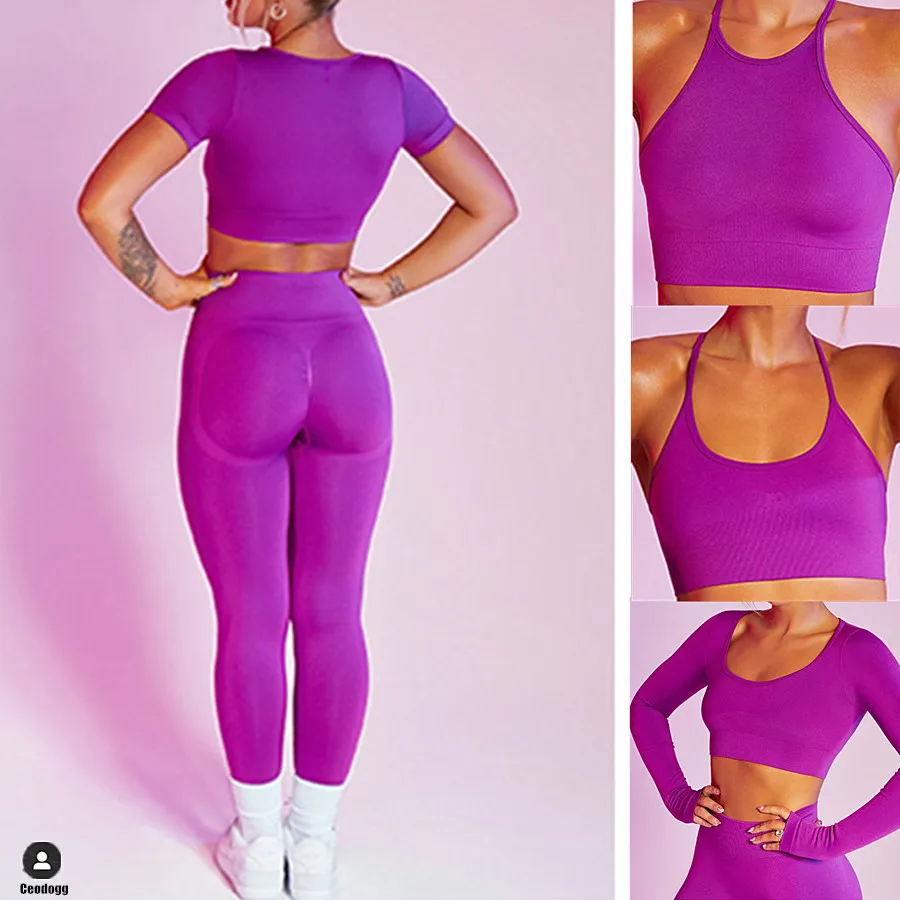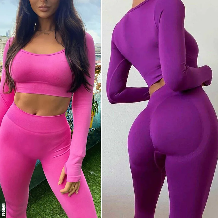 2022 бесшовный комплект для йоги с длинным рукавом, воспламеняющийся глубокий Топ, женские леггинсы для тренировок, тренировочные костюмы для тренажерного зала, спортивные наряды Su