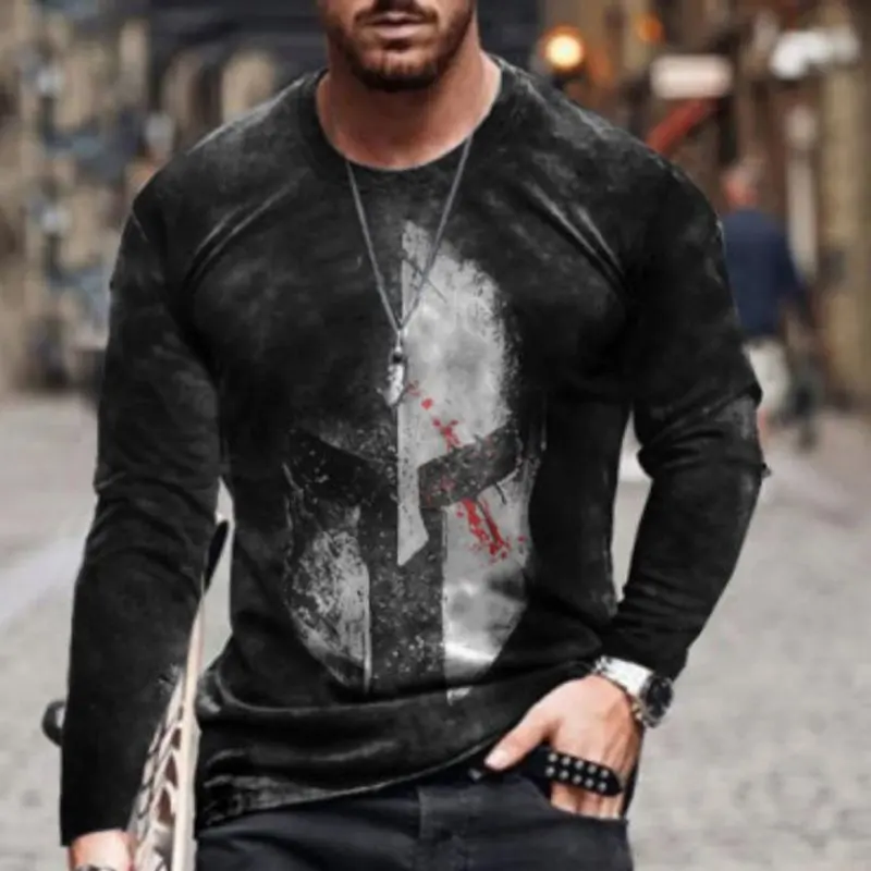 Европейская и американская популярная мужская повседневная футболка с 3D Цифровым принтом и длинным рукавом, модная трендовая футболка с 3D принтом
