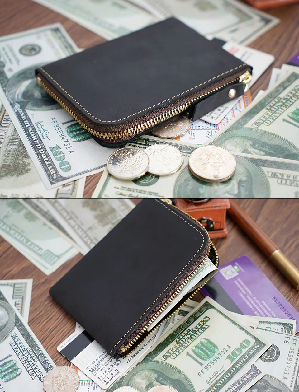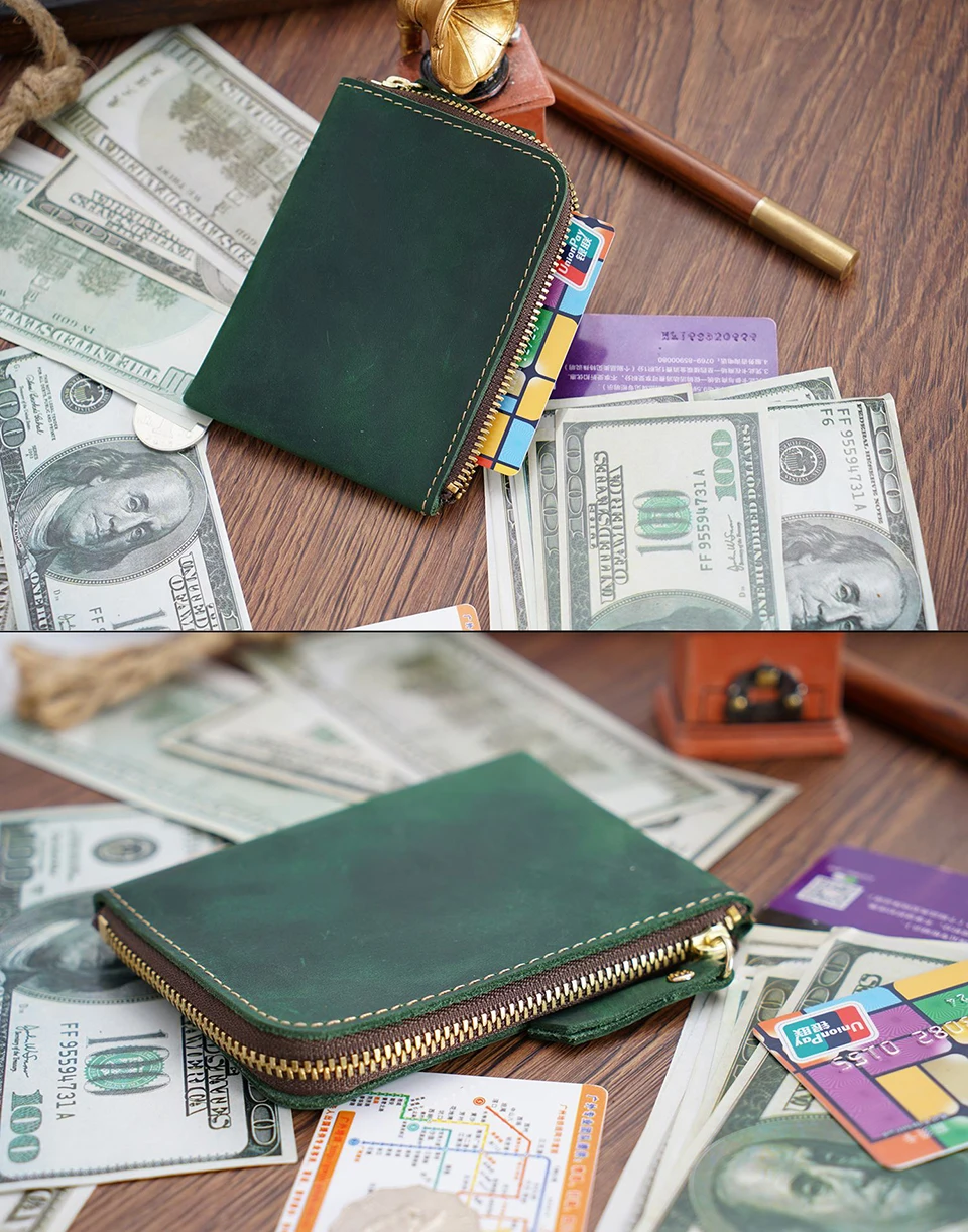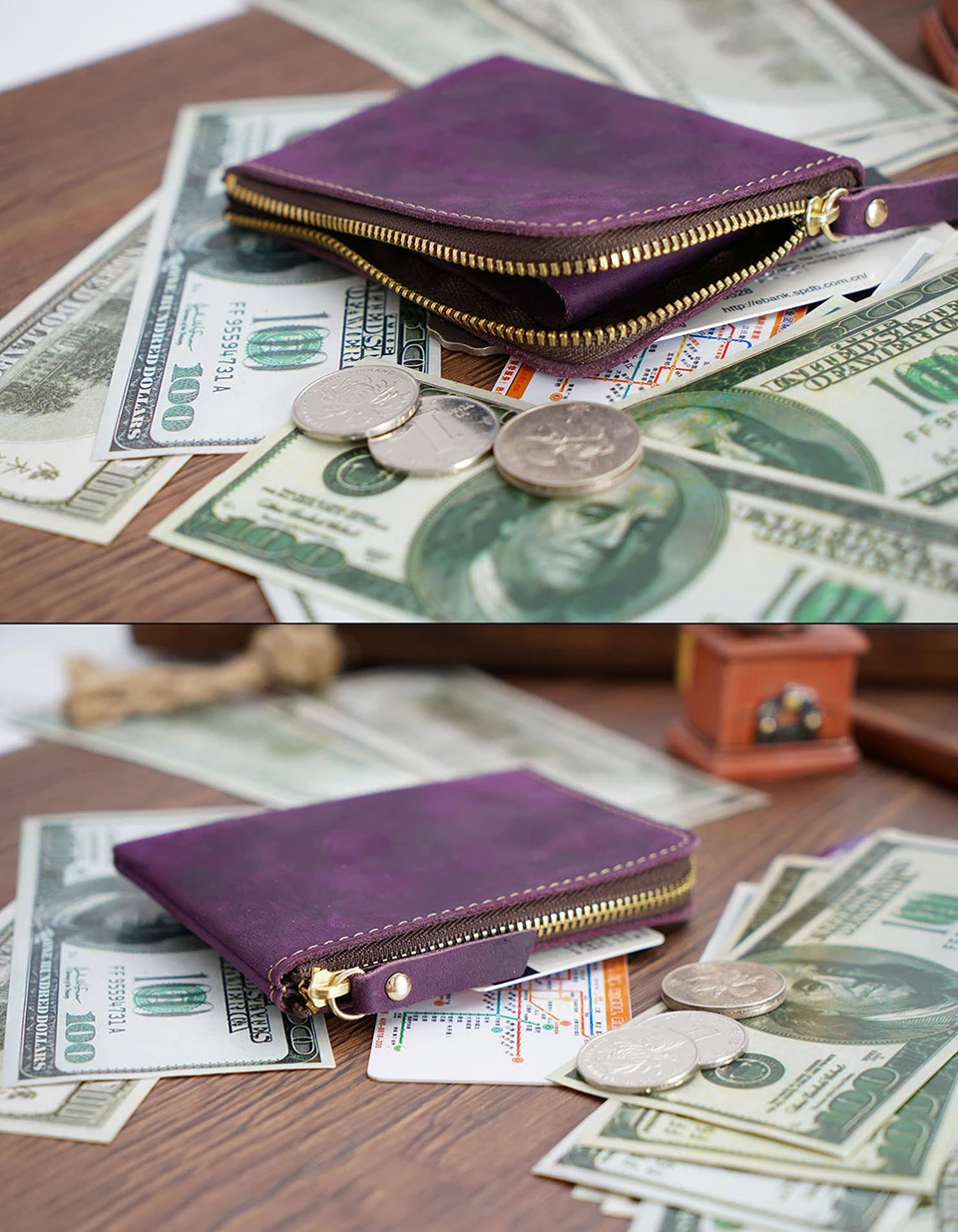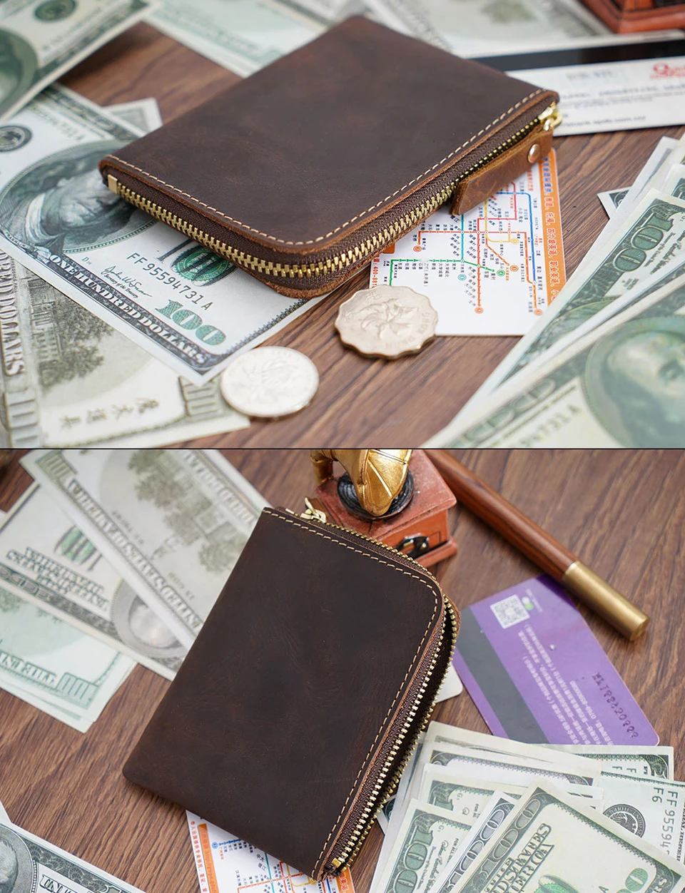 Кошелек ручной работы из кожи Крейзи Хорс для мужчин и женщин, маленький бумажник с монетницей, мини-чехол для карт с бесплатной гравировкой