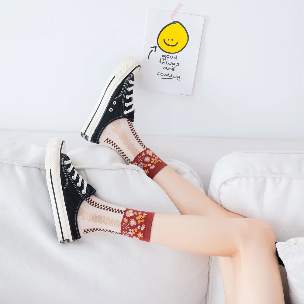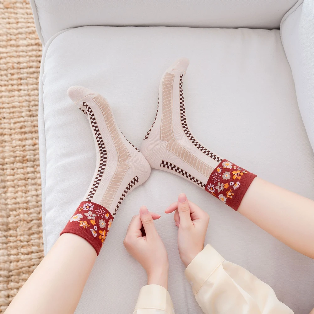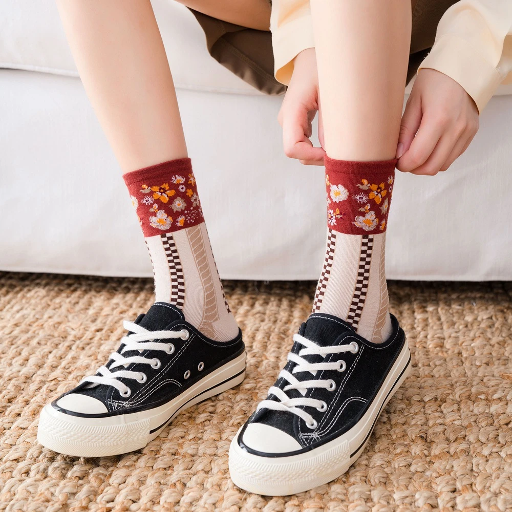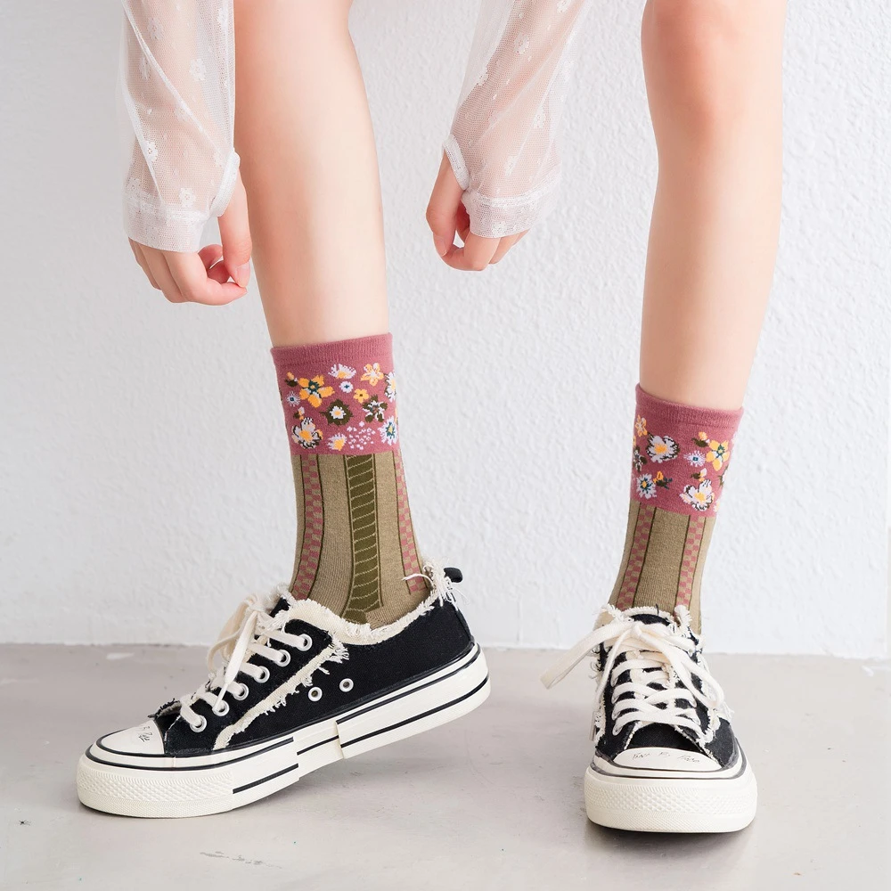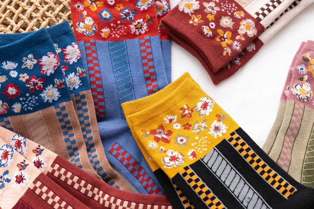 Новые модные стильные носки Mori Girl преппи в национальном стиле с цветами ветра женские милые роскошные хлопковые носки в стиле ретро с вышивкой контрастных цветов