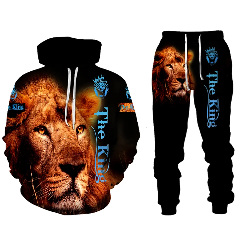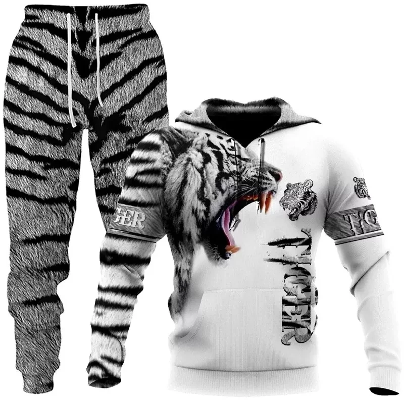 Мужской спортивный костюм с 3D-принтом тигра, повседневные толстовки и штаны