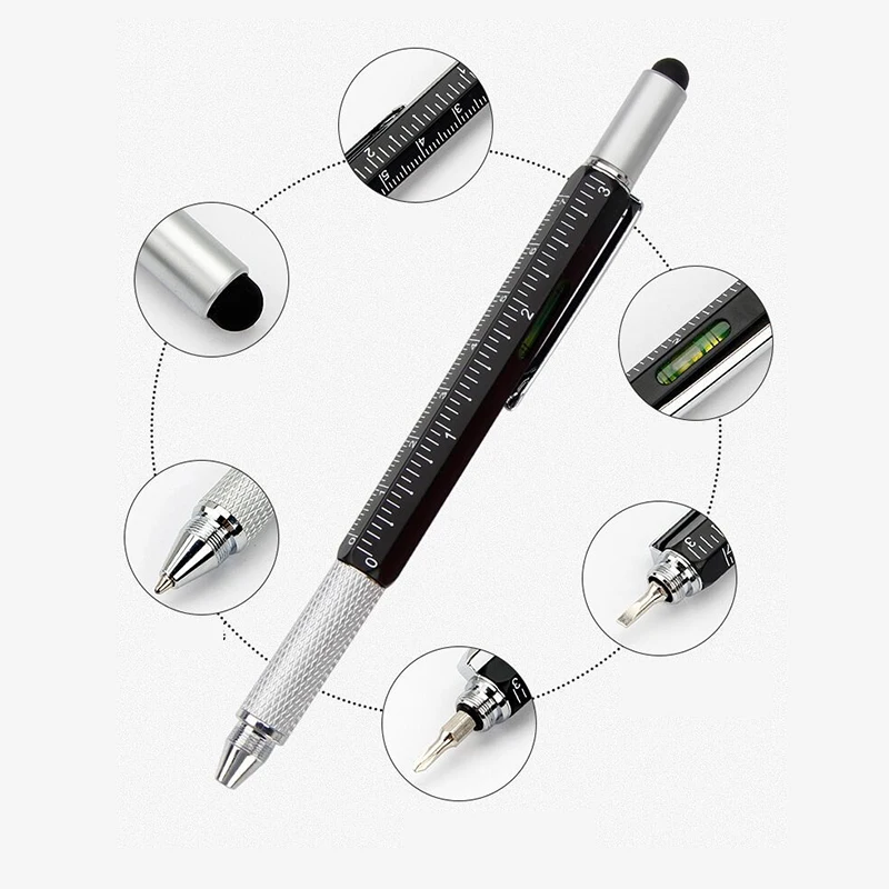 Многофункциональная шариковая ручка с отверткой и линейкой, шариковая ручка с спиртовым уровнем и сенсорным экраном 0,5 мм, черная заправка канцелярские принадлежности для творчества ручка