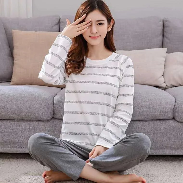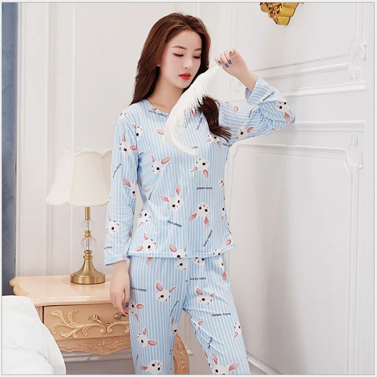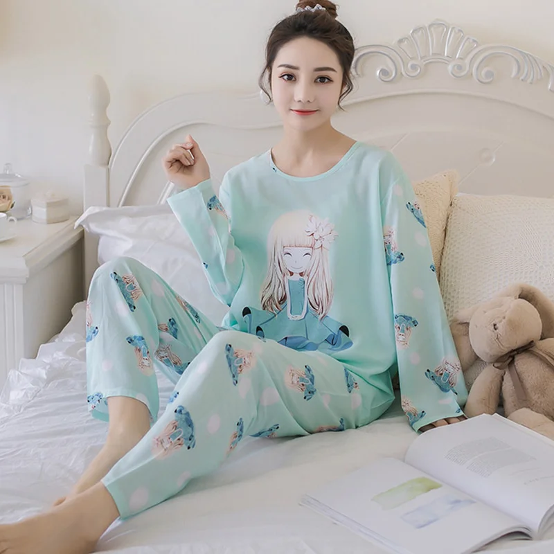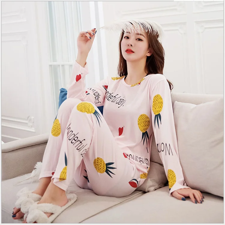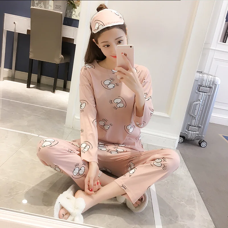 Пижамный комплект женский с длинным рукавом, тонкая одежда для сна ...