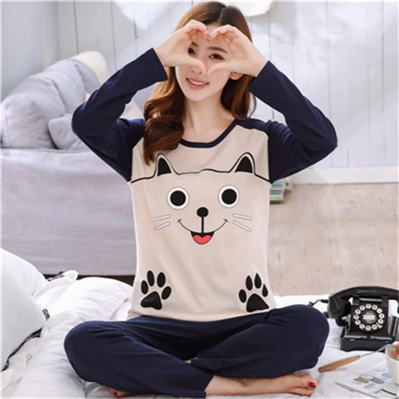 Осенне-зимний женский пижамный комплект из 2 предметов из 2021 хлоп...