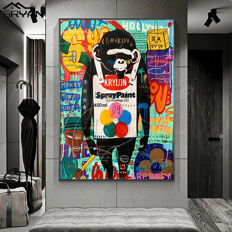 Уличное искусство, забавная обезьяна, Картина на холсте, животные, ...