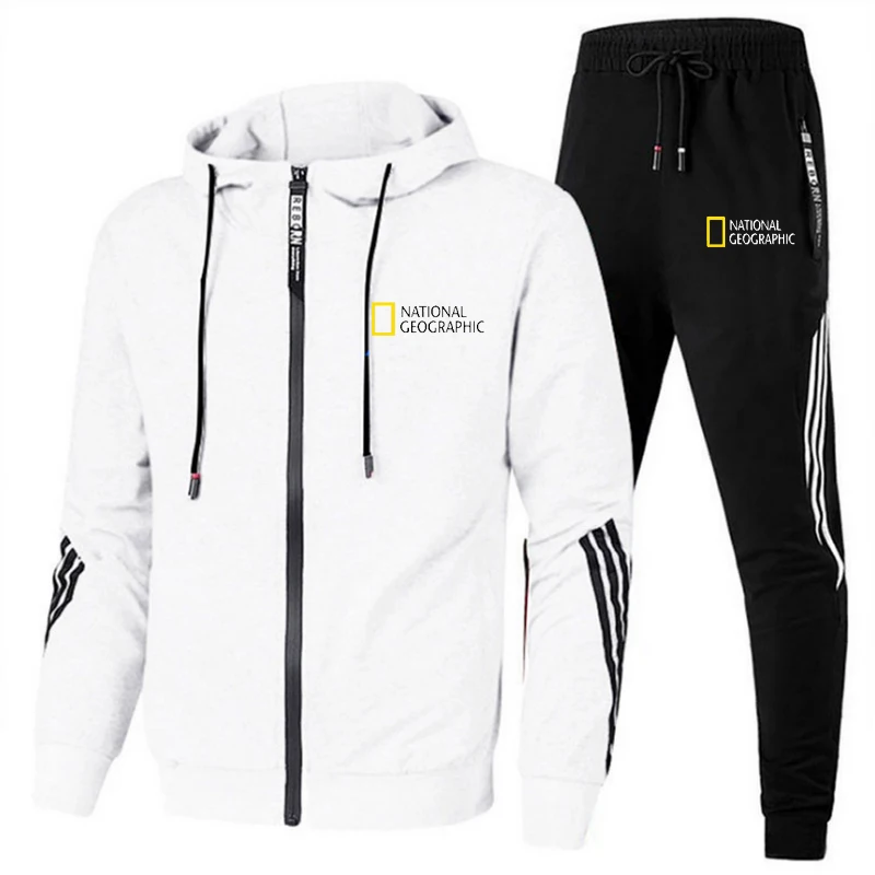 National Geographic-мужской спортивный комплект из 2 предметов, повседневный спортивный костюм с толстовкой на молнии и брюками, фирменная спортивная одежда для спортзала