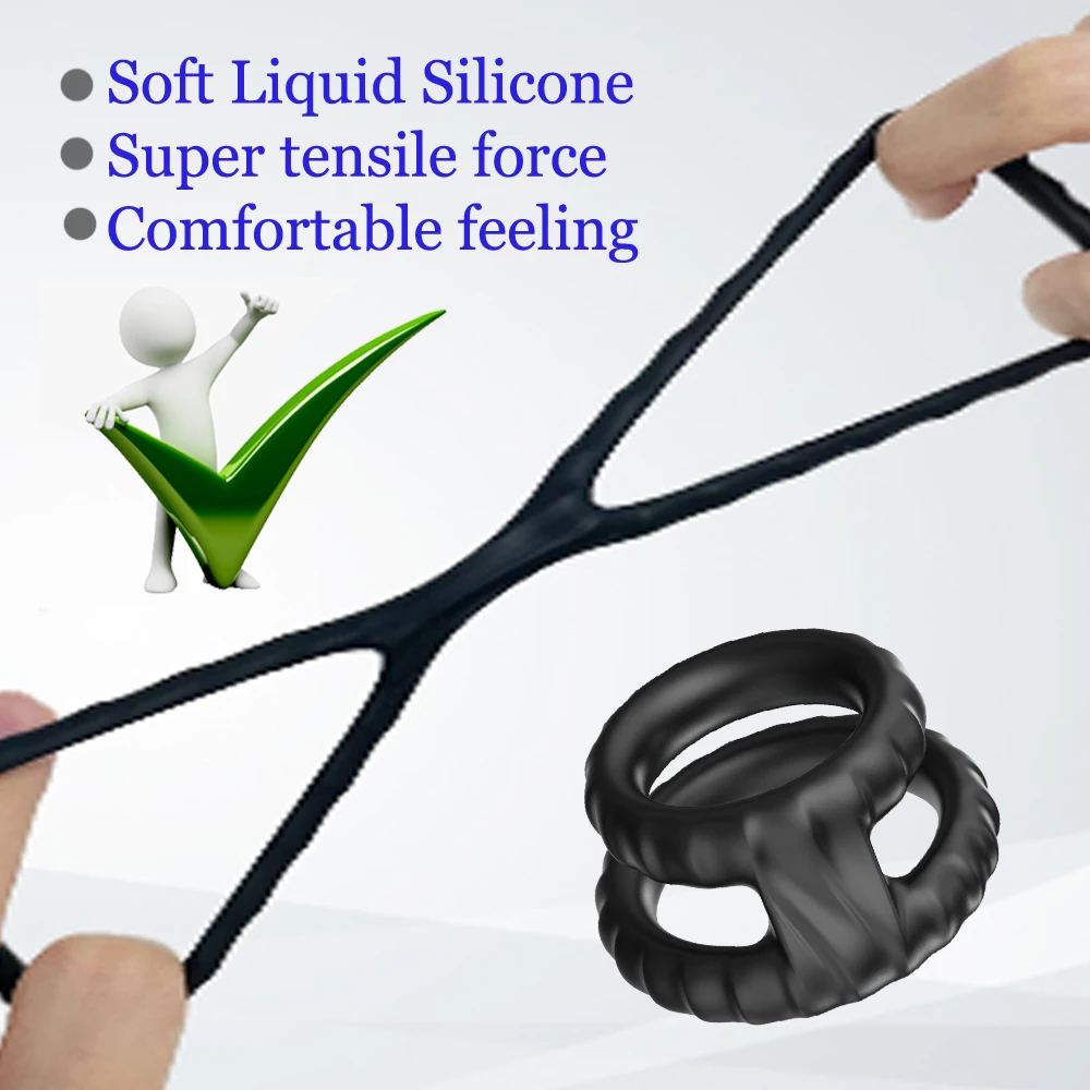 Силиконовое кольцо на пенис, секс-игрушки для мужчин, эрекция, массаж простаты, кольцо на пенис, двойное кольцо, задержка эякуляции, связывание мошонки, товары для взрослых