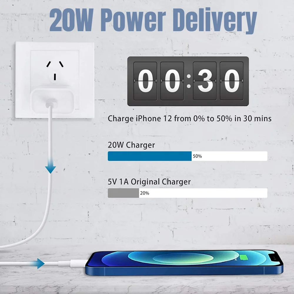 Зарядное устройство USB C, 20 Вт, адаптер для быстрой зарядки iPhone 13 12 Pro Max SE 11 Galaxy S20 S10