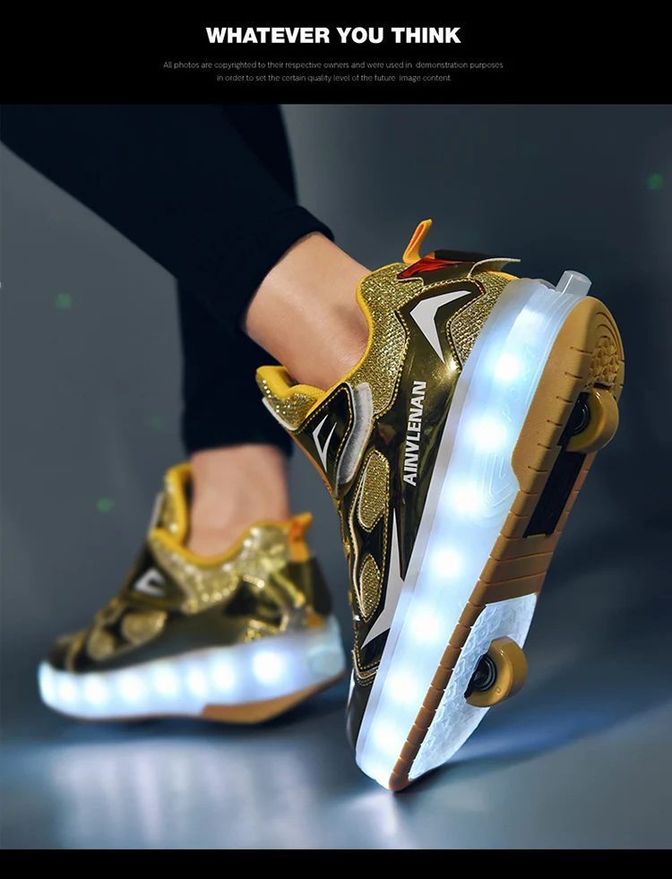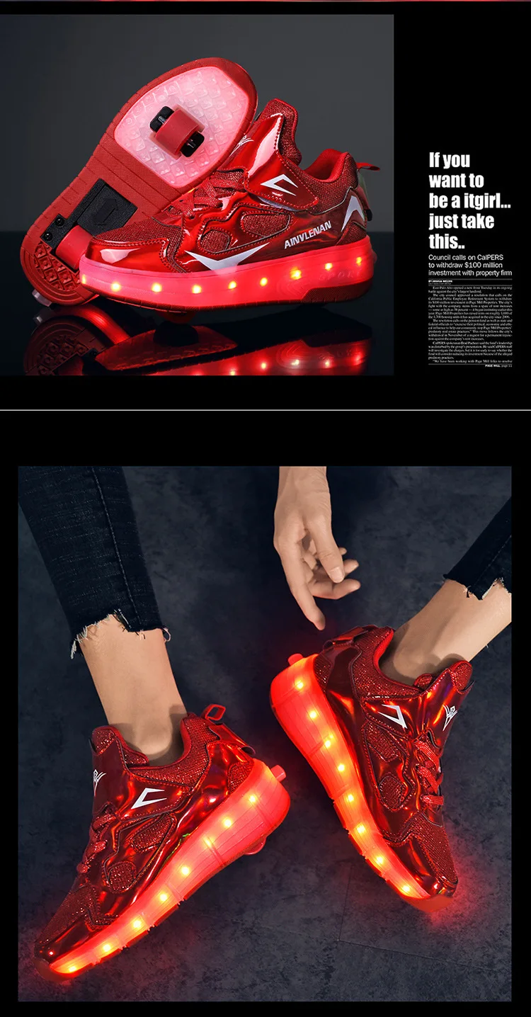 Детские кроссовки со светодиодными колесами и USB-зарядкой