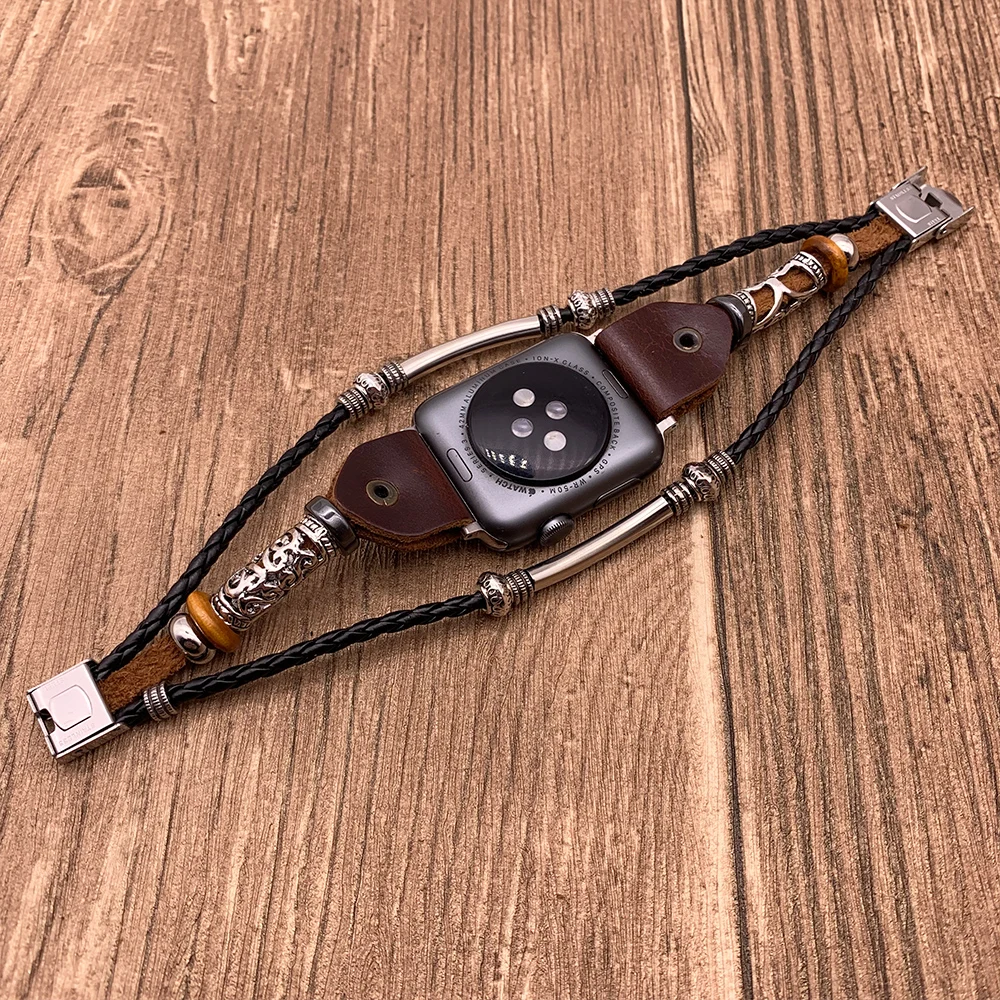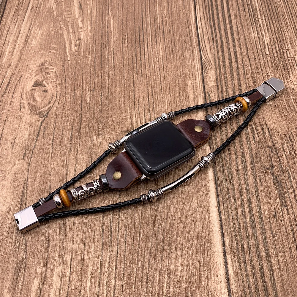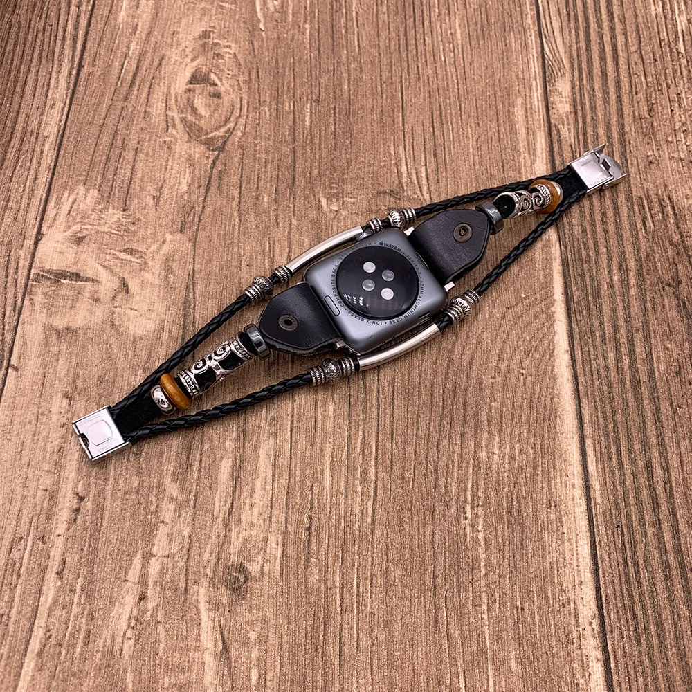 Винтажный кожаный браслет с бусинами Kirykle для Apple Watch серии ...