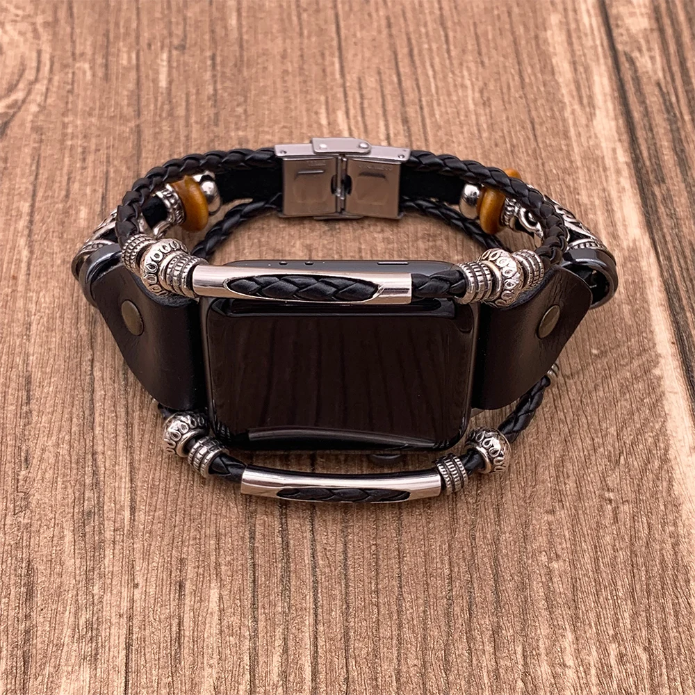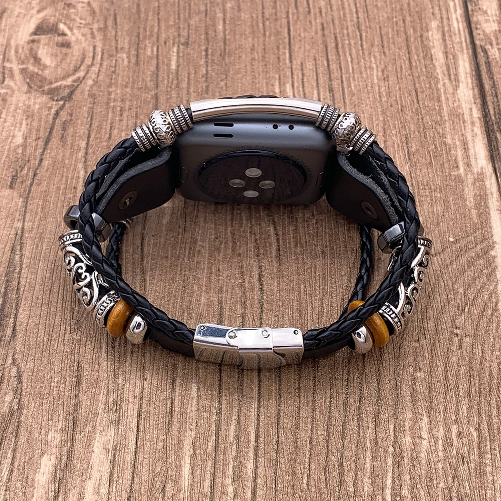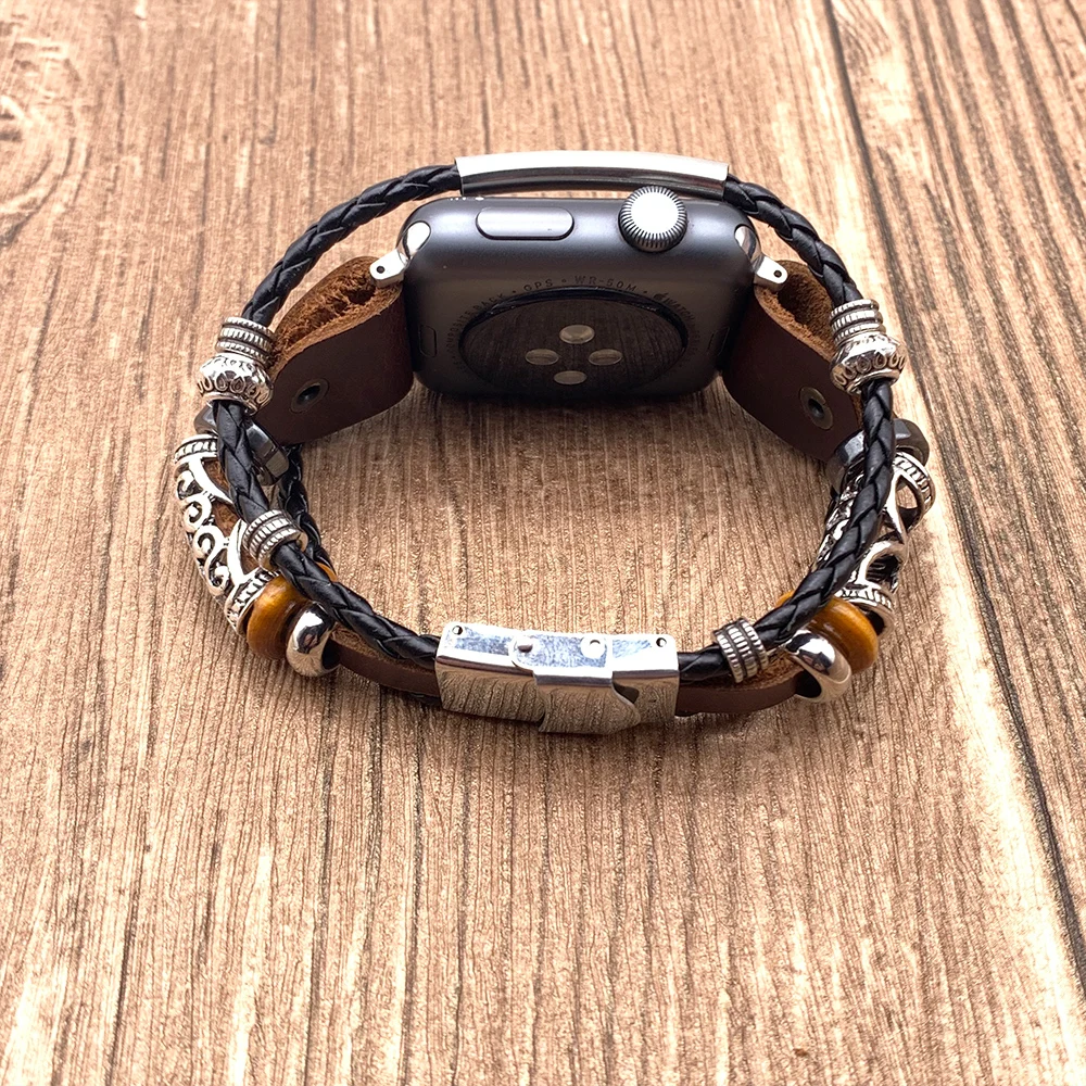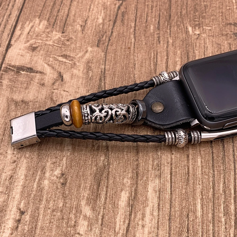 Винтажный кожаный браслет с бусинами Kirykle для Apple Watch серии ...
