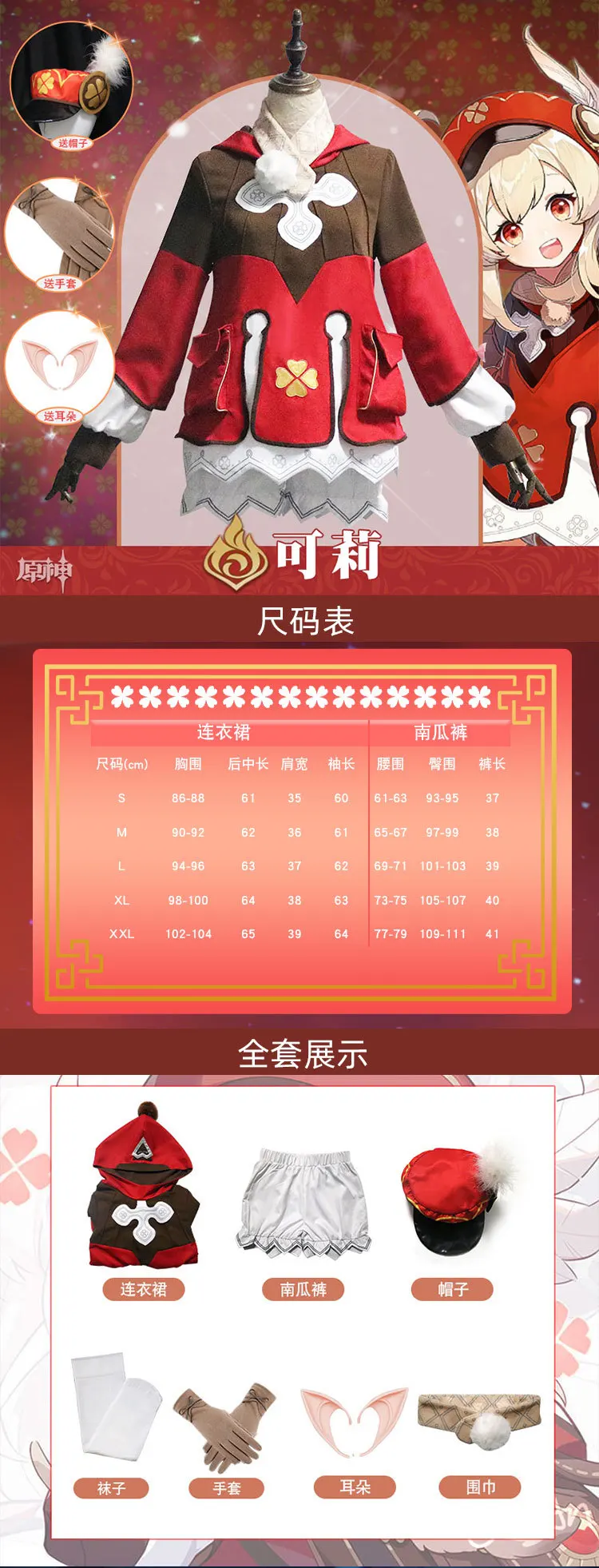 Одежда для косплея Genshin Impact, Venti Xiangling Hutao Keqing Kle...