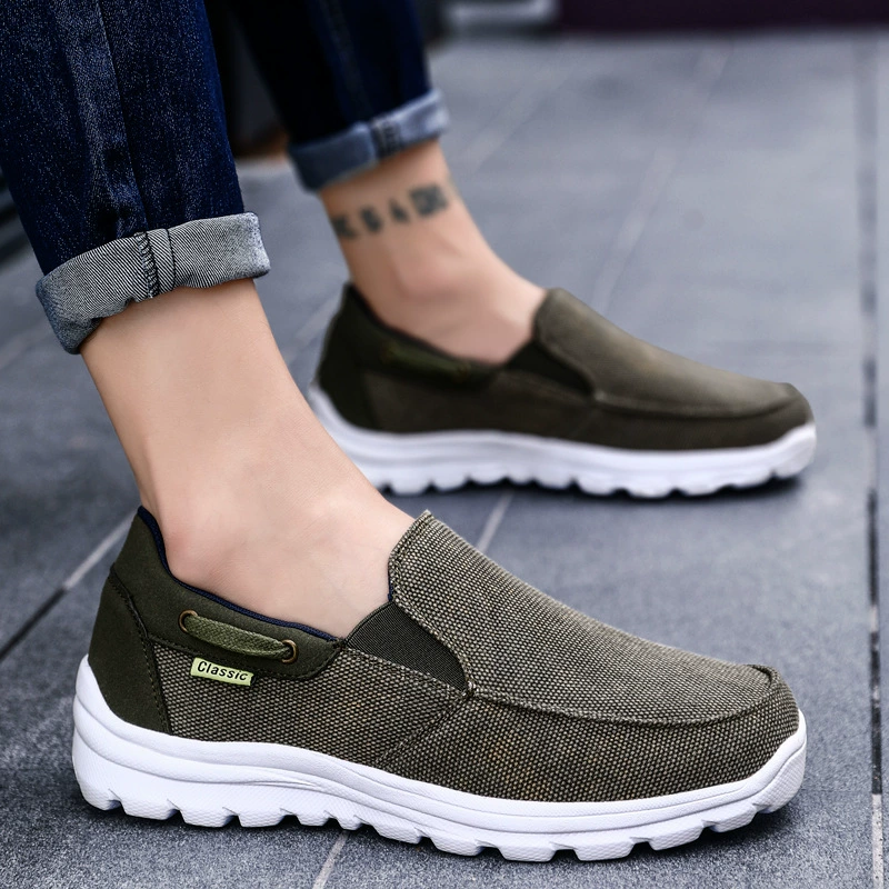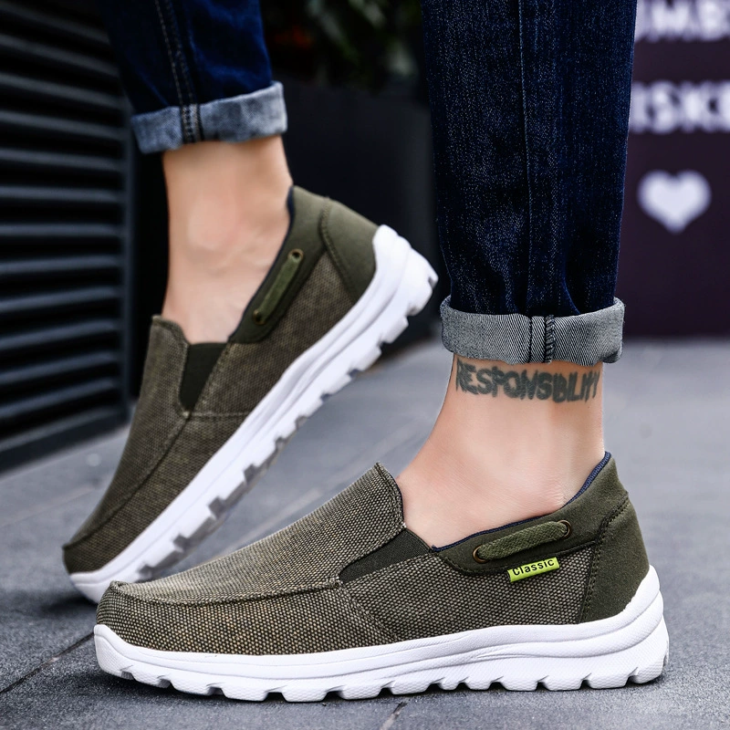 Мужские парусиновые туфли, легкие дышащие Лоферы без шнуровки, осен...
