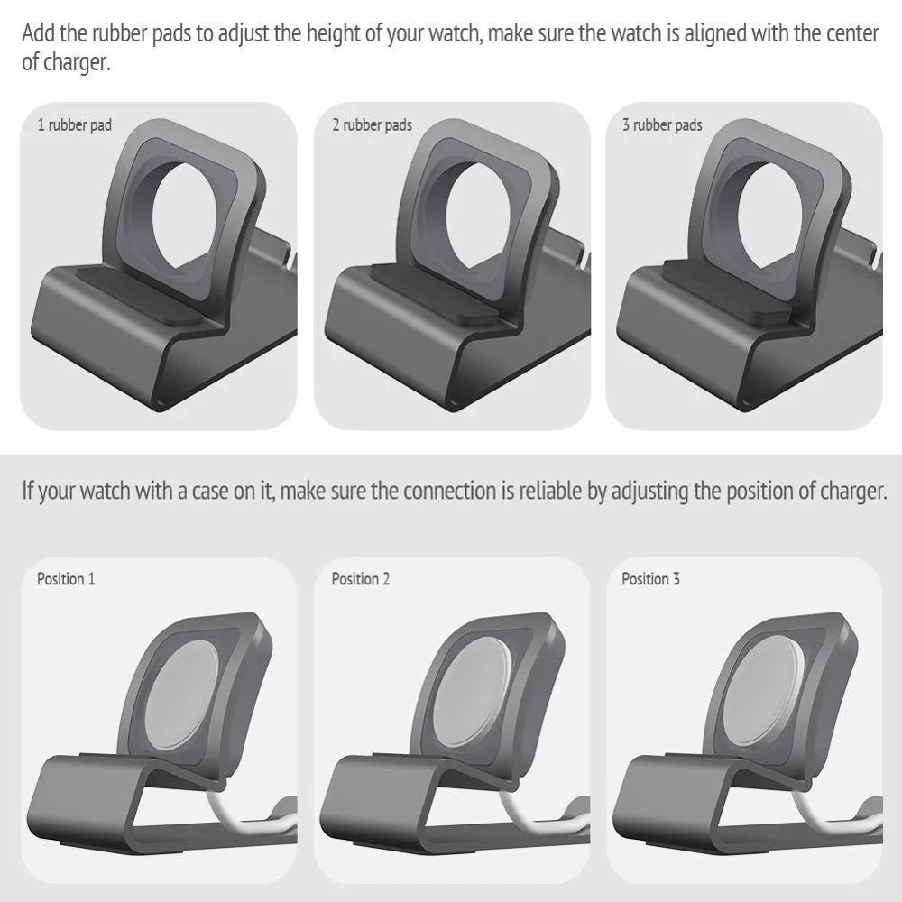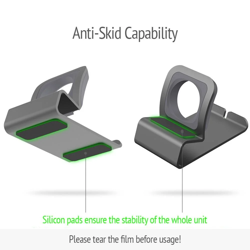 Изысканный алюминия кремния кронштейн Зарядное устройство Док-станция с зарядной подставкой Держатель для наручных часов apple watch подставка для серии iPhone SE/6/5/4/3/2/1 38, 42, 40, 44 мм Торговая марка: sincetop Модель: T025 Название: подставка для зарядки для apple watch, версии SE/6/5/4/3/2/1 Вес: 50 г Материал: ALU лучей из ТПУ + из Размеры: 77*54*44 мм Особенности: примечание: кабель для часов не входит в комплект