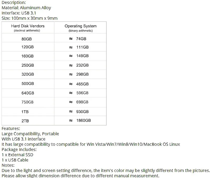 Внешний твердотельный накопитель SSD, 2 ТБ ГБ500 Гб1 ТБ, TYPE-C дюйма