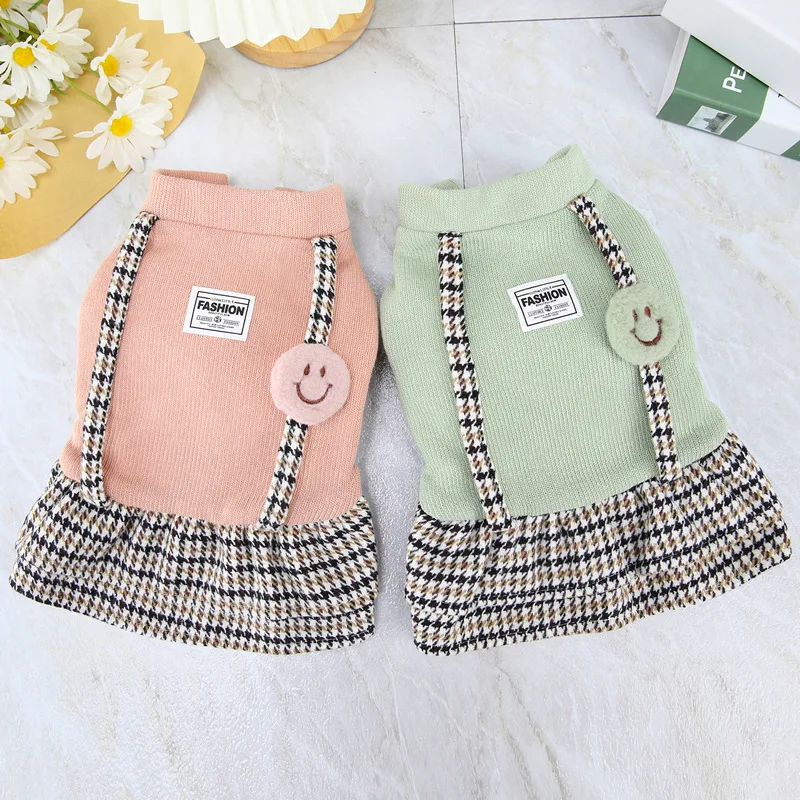 Платье для собаки, зимняя одежда, юбка для собаки, милая хлопковая Юбка со смайликом, наряд для вечерние, одежда для щенка, кошки, одежда для домашнего питомца