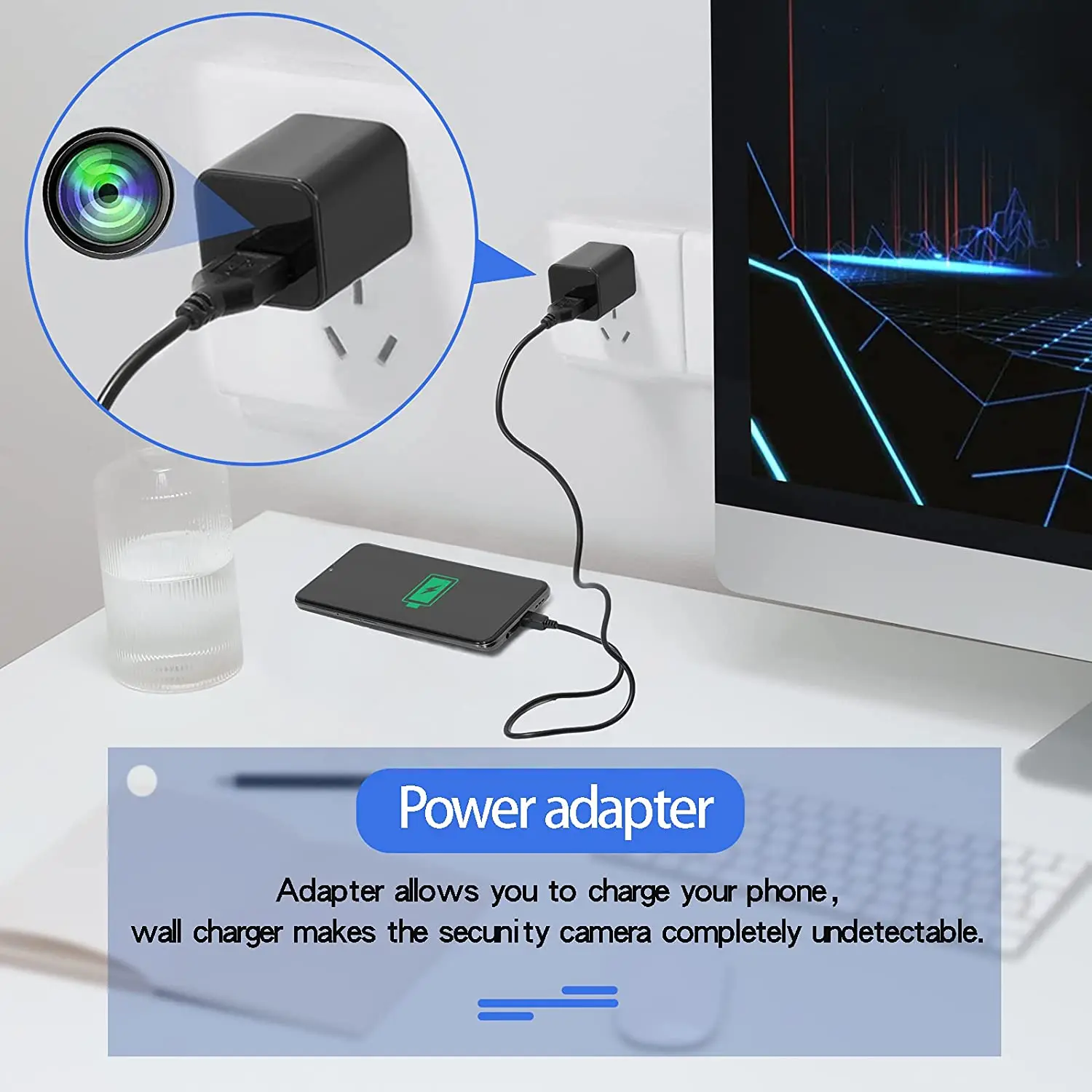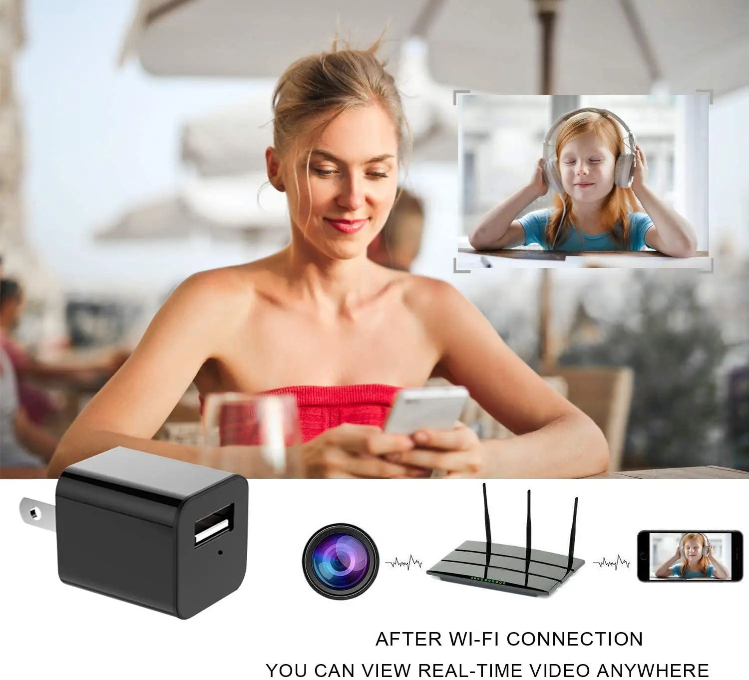 1.USB зарядное устройство камеры: эта камера безопасности также является зарядным устройством USB, он может записывать видео full HD 1080P во время зарядки устройства, не будучи замеченным, следить за ребенком дома, офисная или автомобильная камера безопасности, домашние животные, няня, воры или сотрудники.