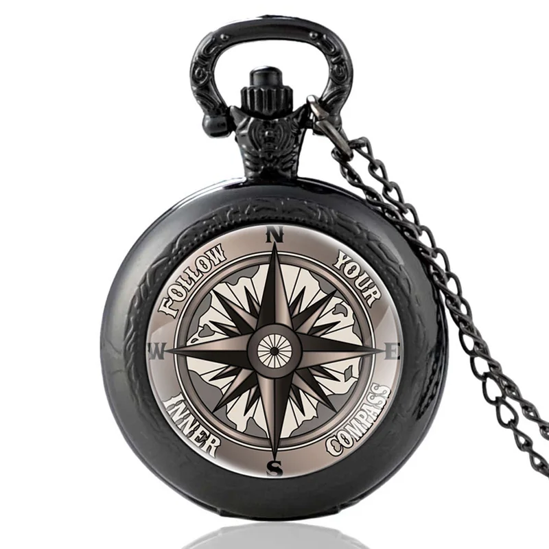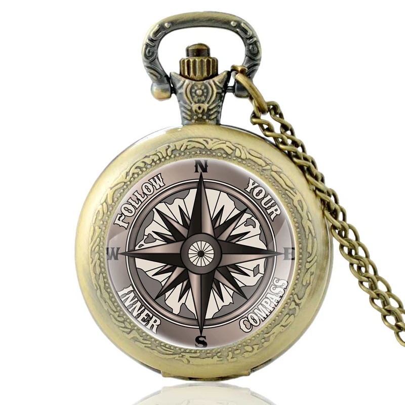 Бронзовые классические кварцевые карманные часы с кабошоном и вашим внутренним компасом, винтажные мужские и женские часы с подвеской и ожерельем, подарки