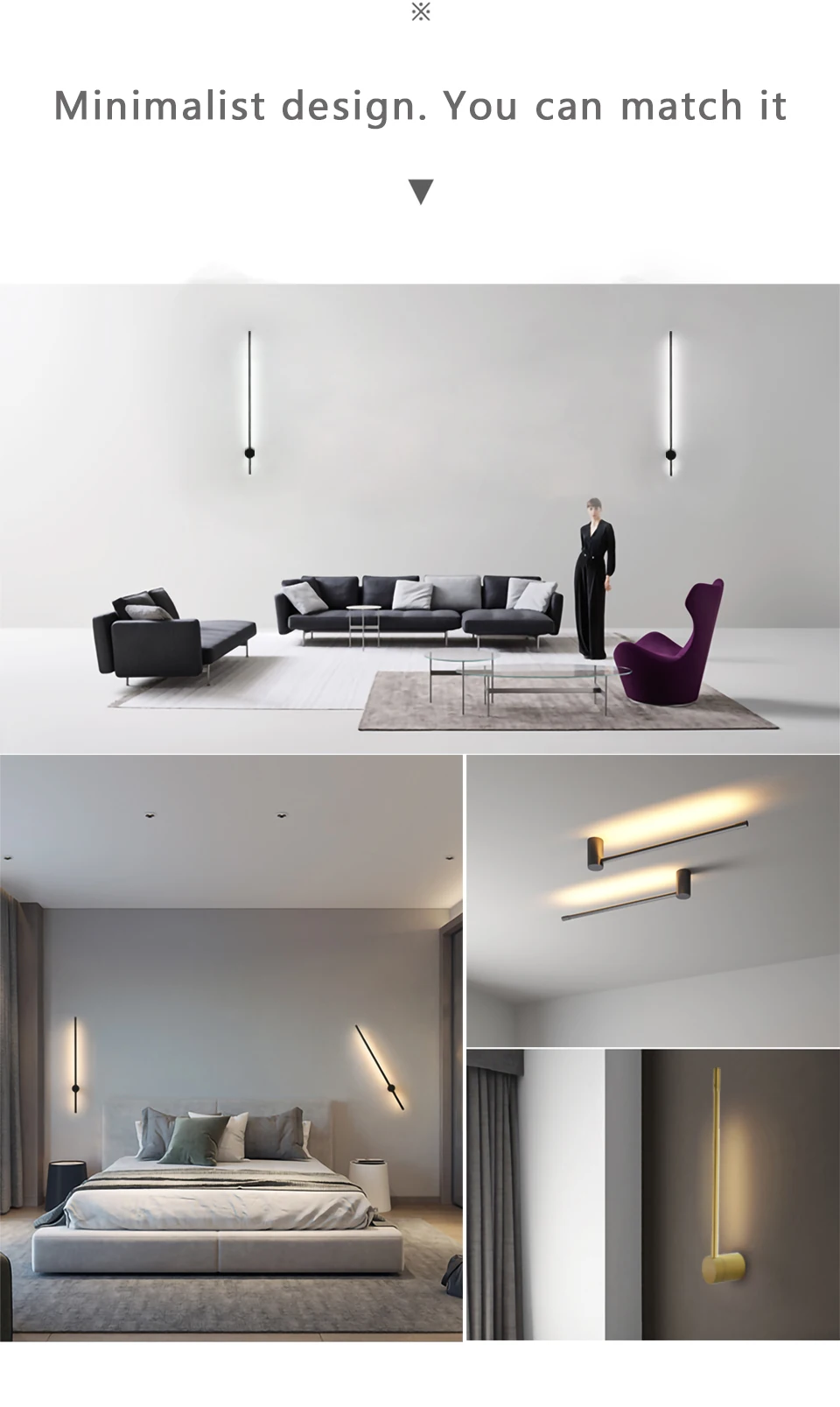 Светодиодный настенный светильник с минималистическими линиями, длинный настенный светильник, Декор для дома, спальни, гостиной, поверхностного монтажа, дивана, настенный светильник