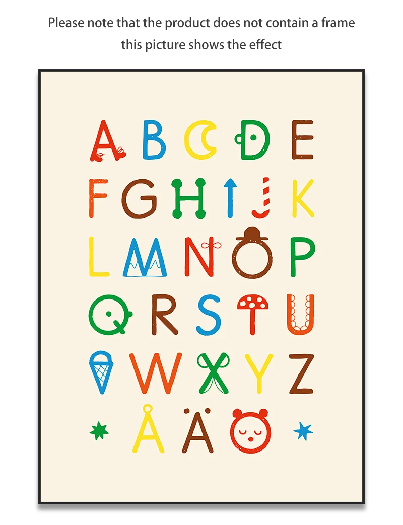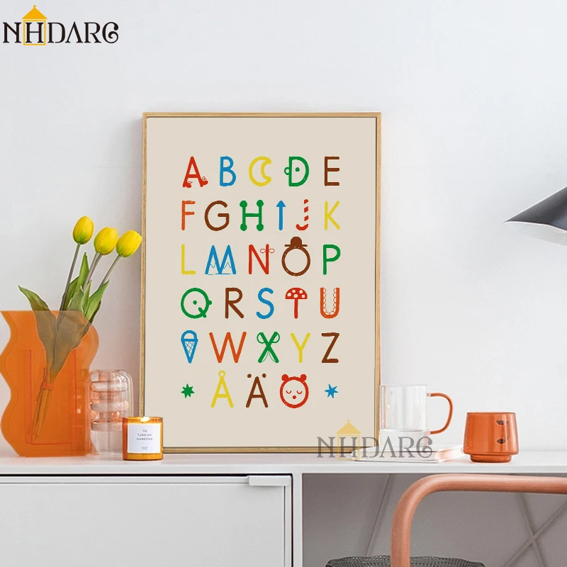 Картина на холсте для детей, постер с 26 буквами на английском языке, забавные настенные картины, современный милый и сладкий домашний декор для детской комнаты
