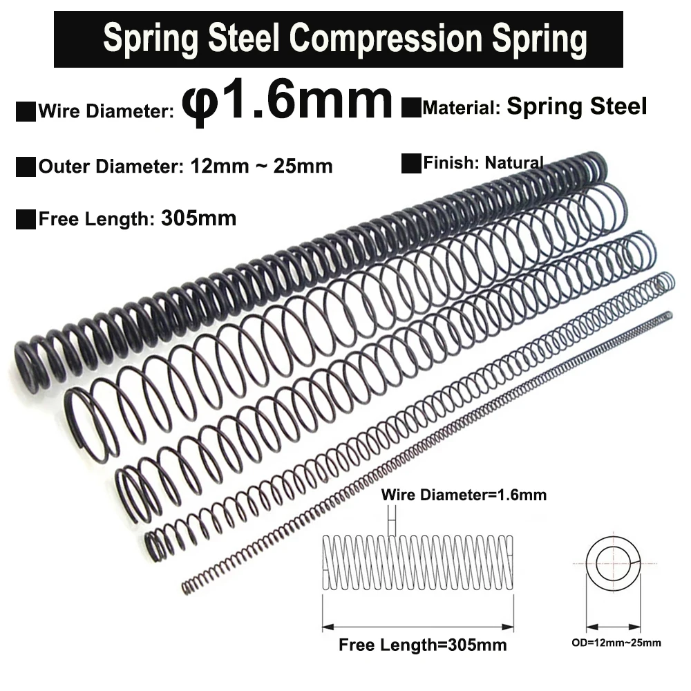 2 шт. диаметр проволоки 1.1.6мм пружина стали компрессионная пружина Свободная Длина 305 мм OD 12 мм ~ 25 мм ультра длинная пружина давления