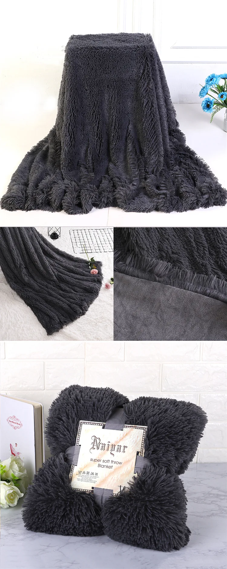 Мягкое меховое покрывало для дивана, длинное ворсистое одеяло из ис...
