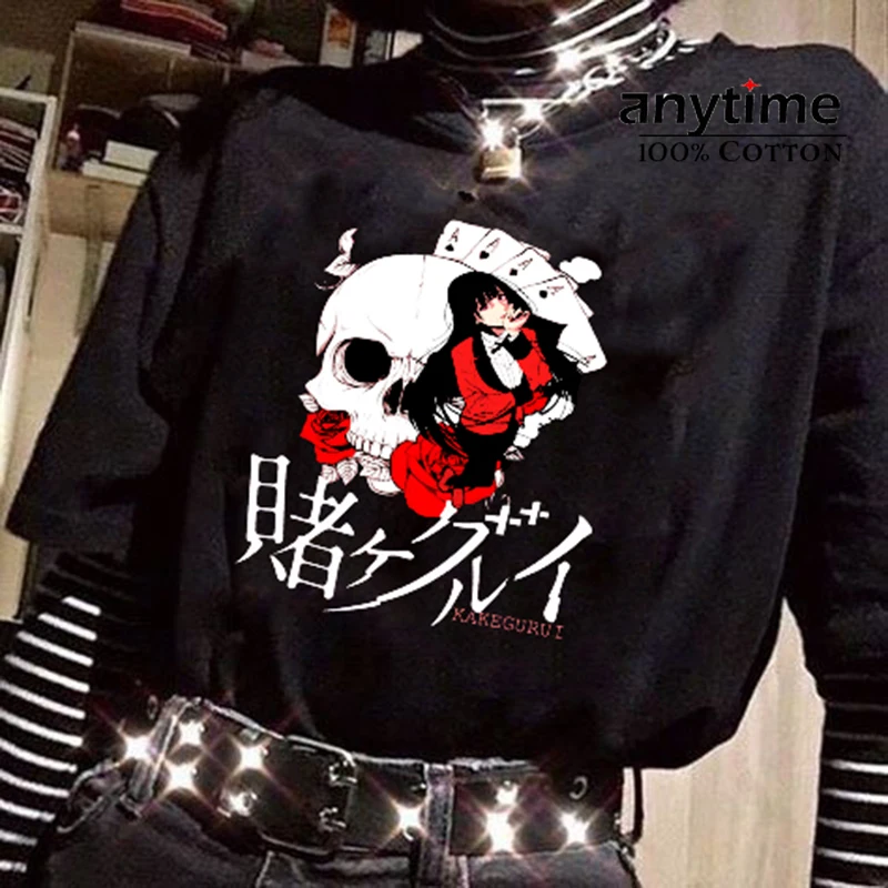 Лучшая хлопковая Футболка Kakegurui Kawaii Женская Повседневная футболка в стиле панк с японским аниме Yomoduki Runa с мультяшным принтом свободная Милая футболка в стиле Харадзюку