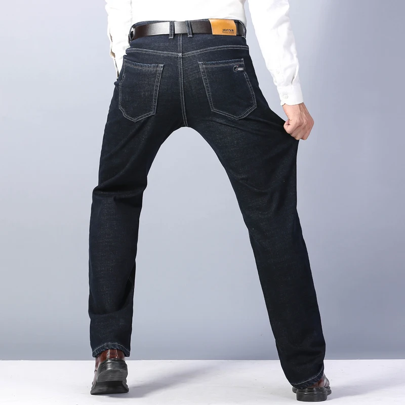 Джинсы мужские стрейчевые, теплые брюки из флиса, свободные прямые, в деловом стиле, повседневные, Осень-зима, 12 моделей