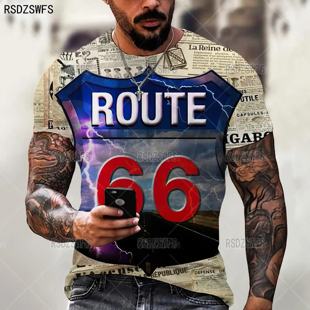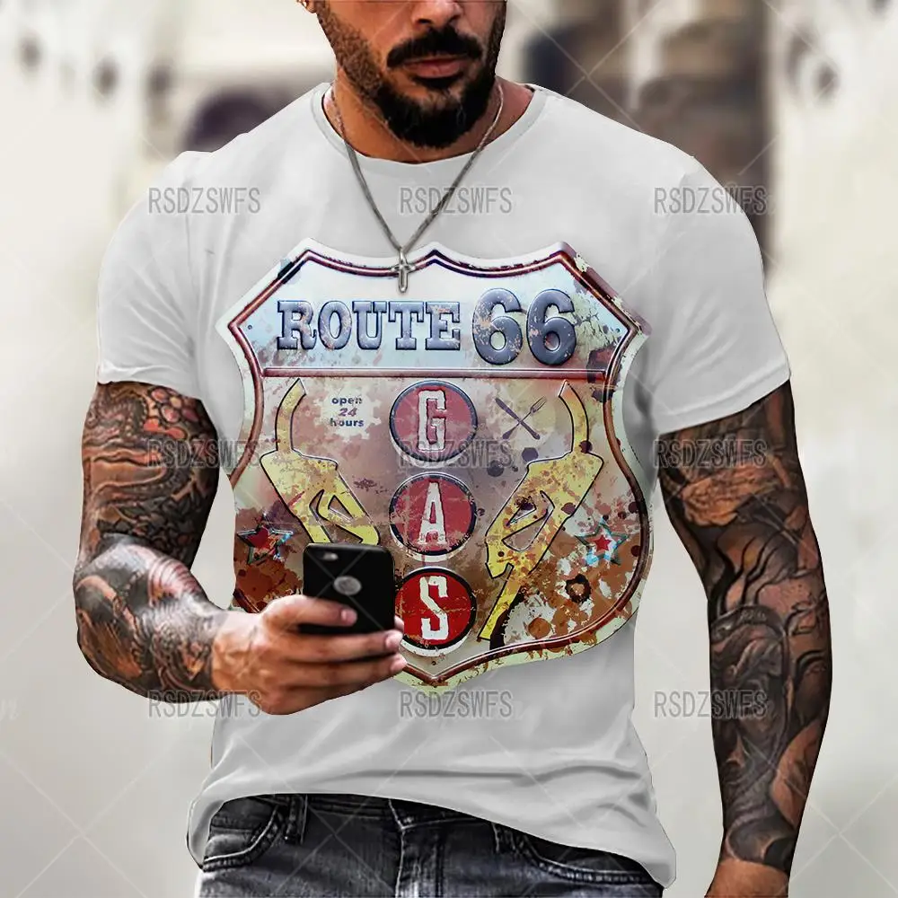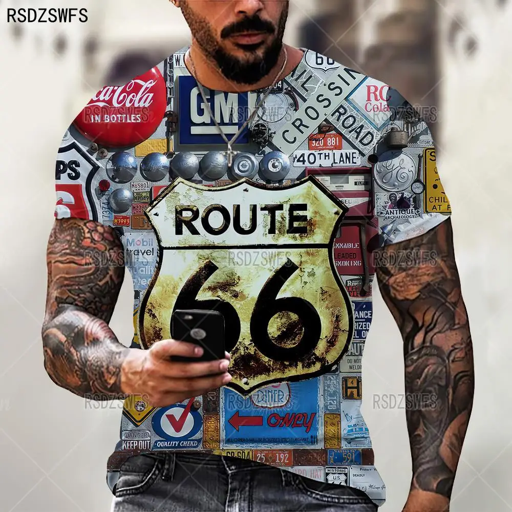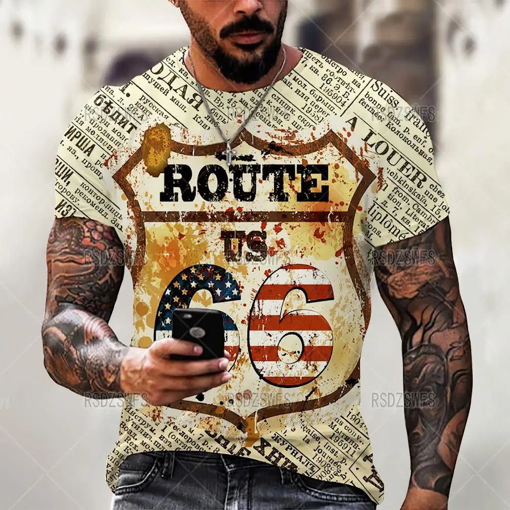 Mosaic colorRoute 66 Letter 3D Printing Men T Shirt
