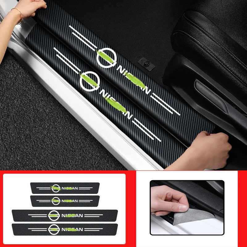 Автомобильная кожаная защитная дверь из углеродного волокна наклейка на порог аксессуары для Nissan Qashqai j10 Tiida Altima Juke X-trail Patrol Navara Teana Skyline Versa Sentra Rogue Pathfinder Murano Maxima Sylphy Leaf
