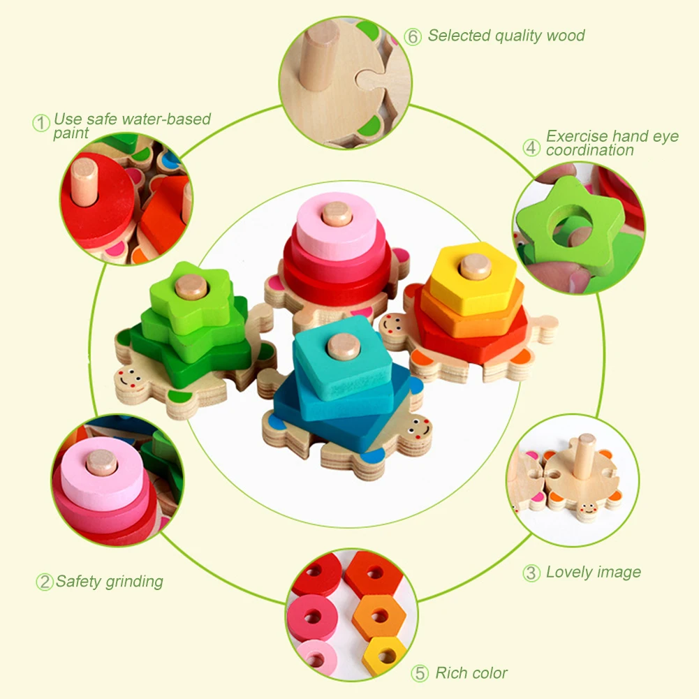 Цветные красочные деревянные игрушки для укладки безвкусная геометрическая форма сортировщик головоломка распознавание цвета раннее развитие моторики обучающие игрушки для детей ясельного возраста