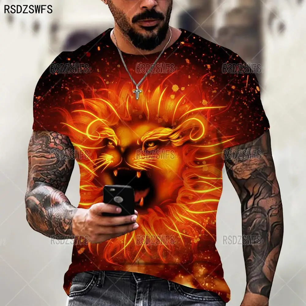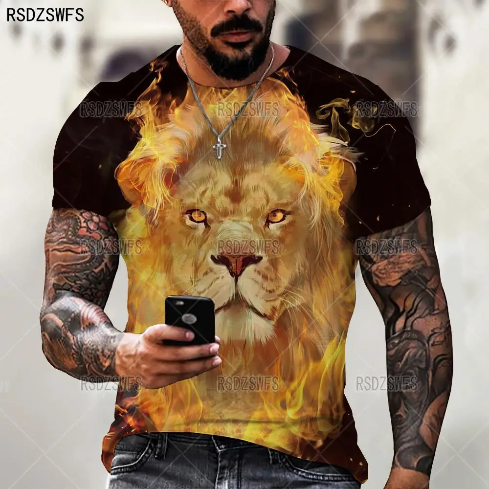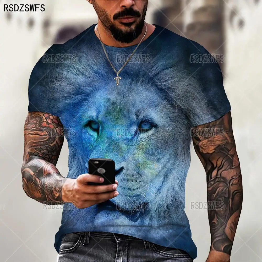 Футболка мужская оверсайз с круглым вырезом, модная тенниска с 3D-принтом льва, Стильная майка с коротким рукавом, в стиле Харадзюку, на лето