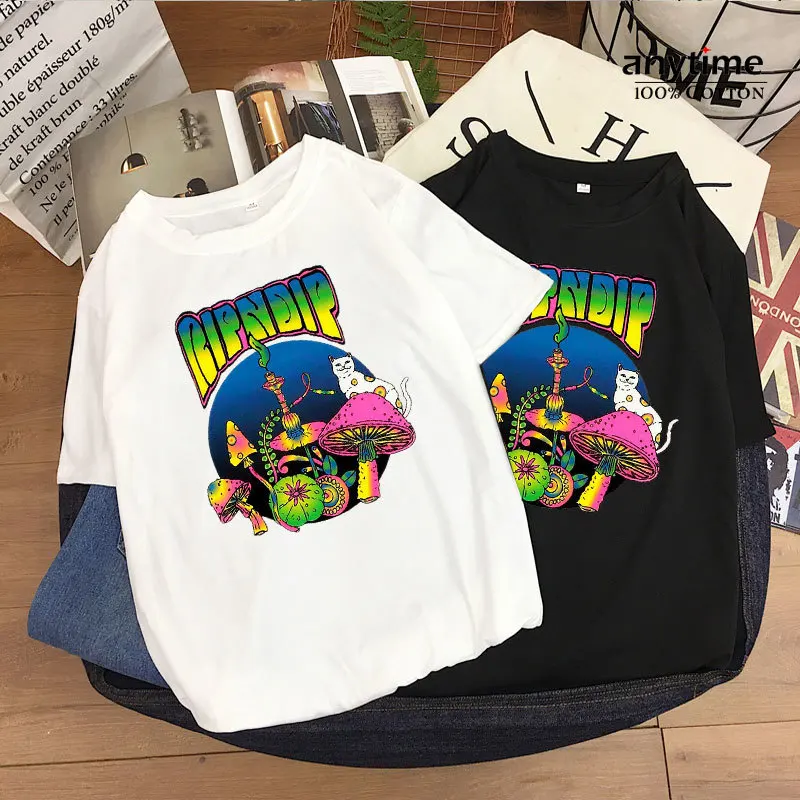 Лучшая хлопковая Футболка Харадзюку с красочным принтом в виде грибов и котят, Повседневная Уличная одежда, модная повседневная футболка, женские и мужские повседневные топы