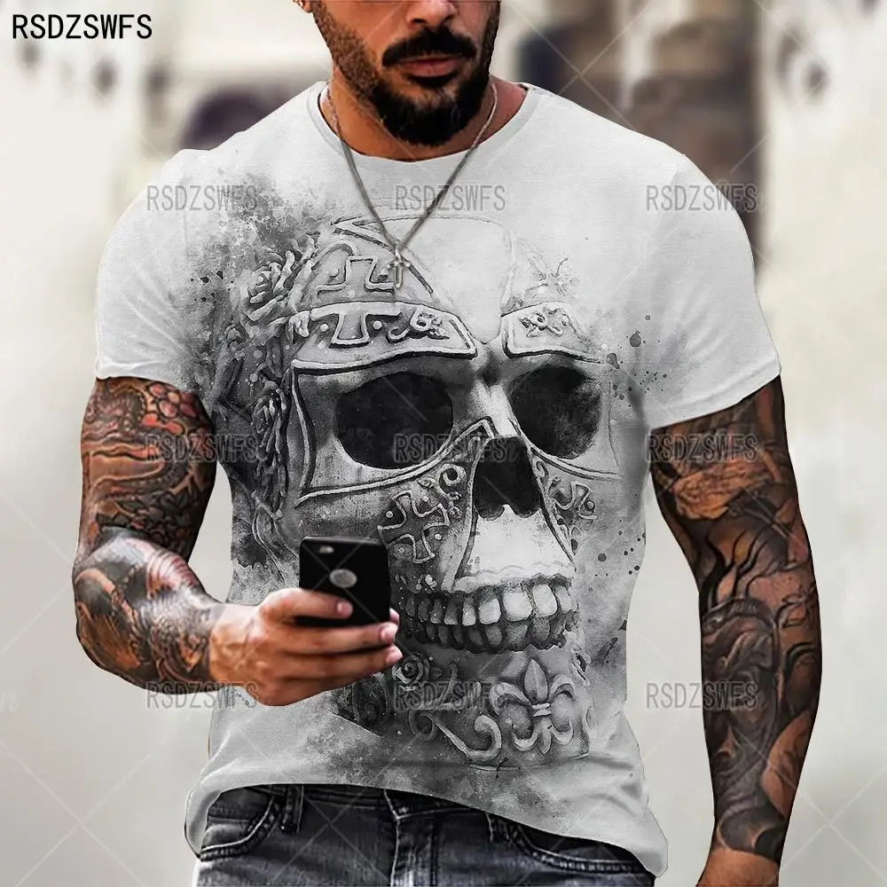 Футболка мужская с 3D-принтом черепа и ужасов, модный топ оверсайз ...