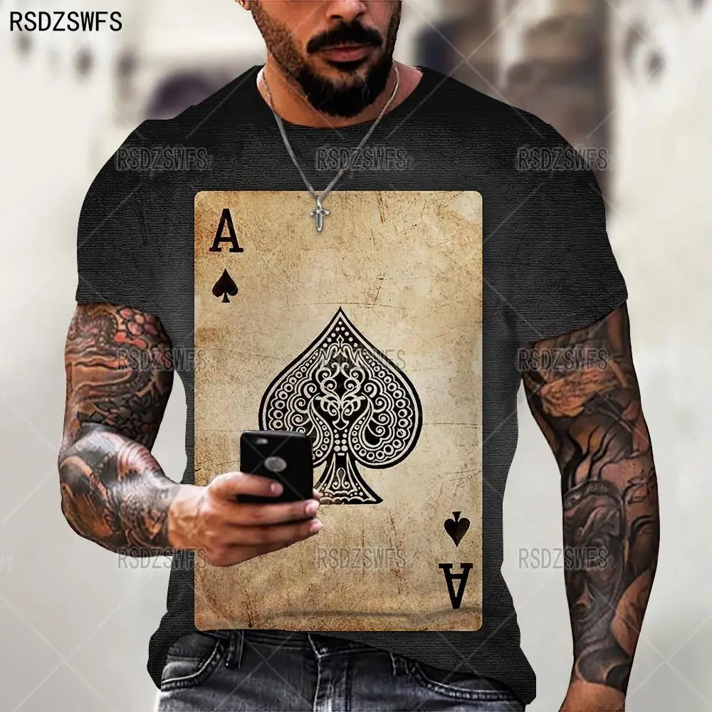 Футболка мужская оверсайз с принтом игральных карт, модная тенниска из полиэстера с 3D игральными картами, модная уличная одежда, топ на лето