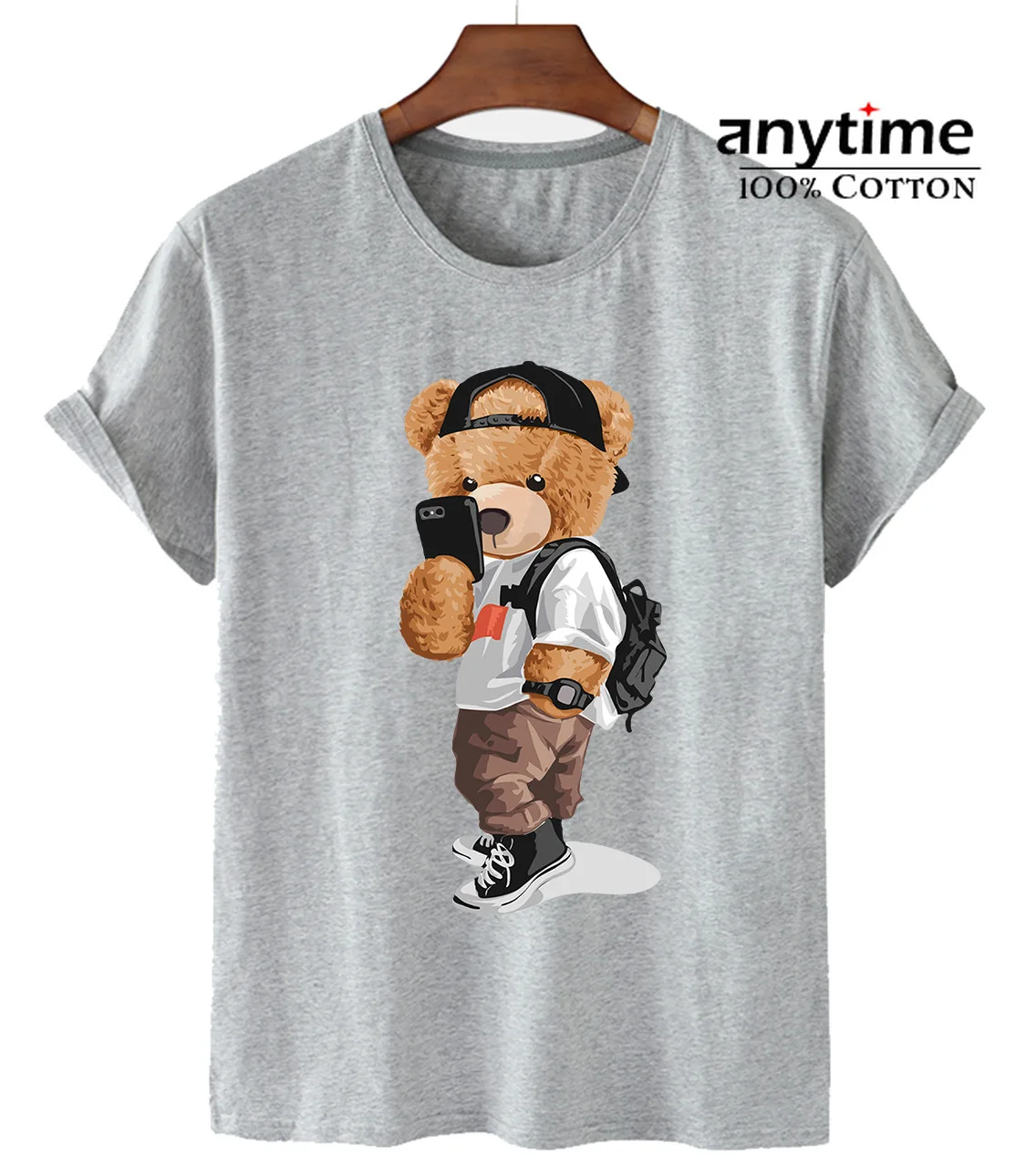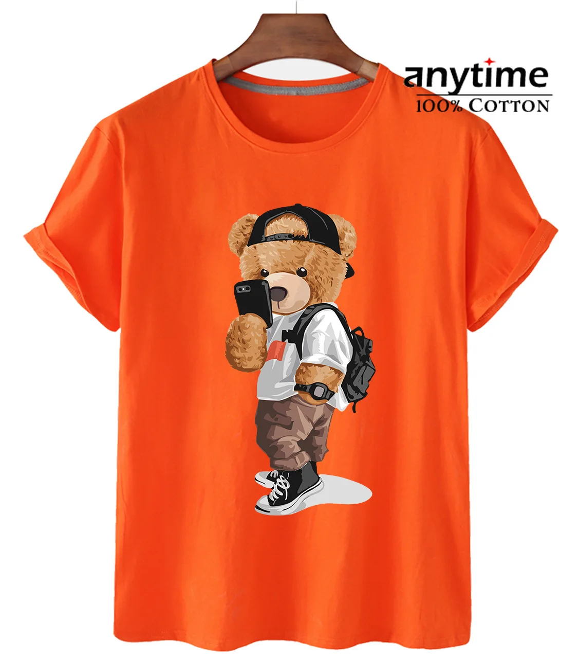 Лучшая хлопковая ткань для мужчин и женщин, Высококачественная уличная Свободная Повседневная футболка с принтом медведя для селфи, женские футболки большого размера, Лидер продаж