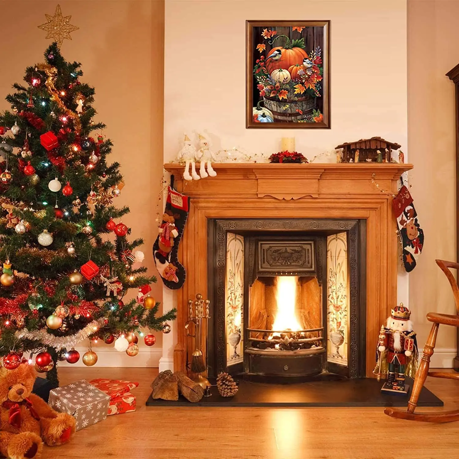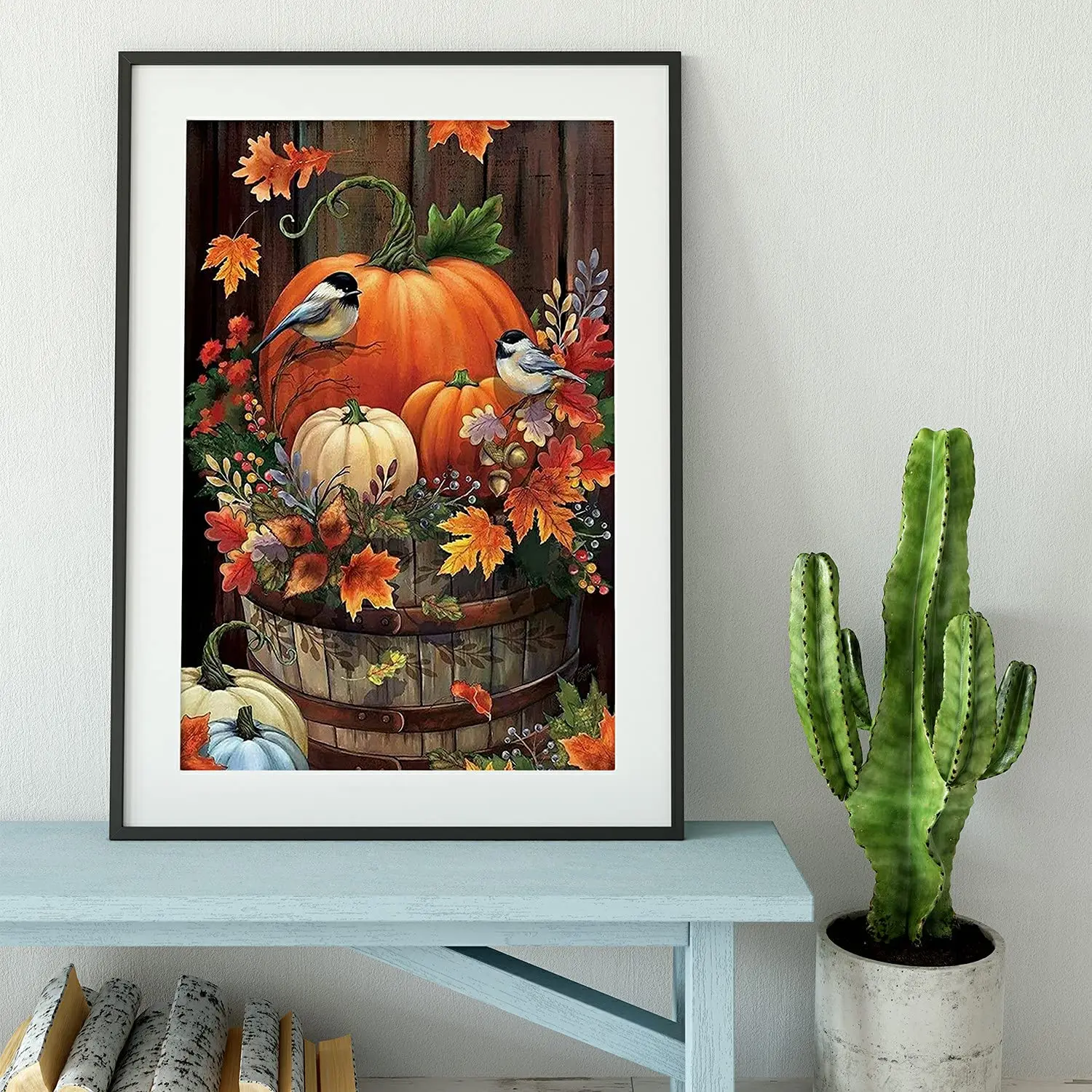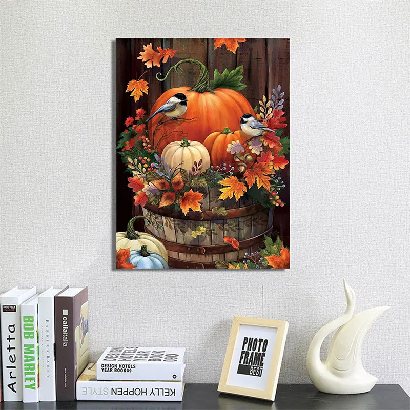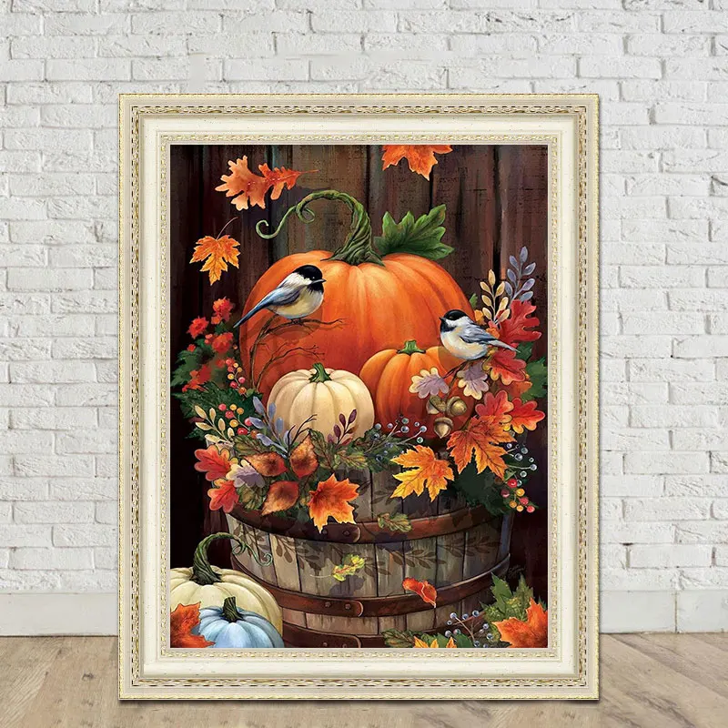 Unisonju Diy Алмазная картина, полностью квадратные круглые стразы, птица на Рождество, тыква в горшке, алмазная вышивка, мозаика, домашний декор