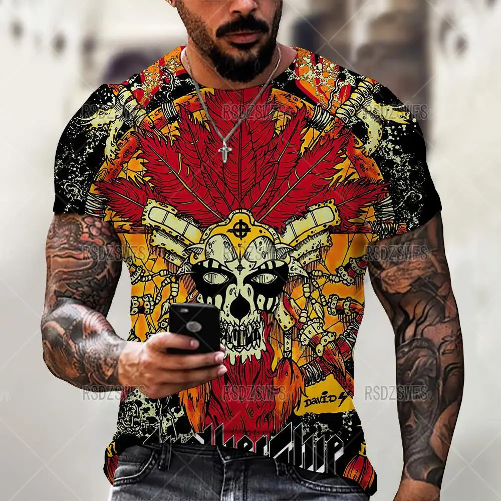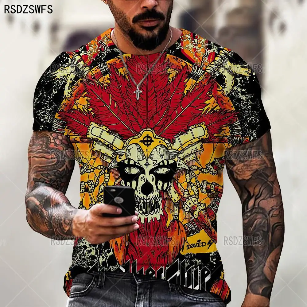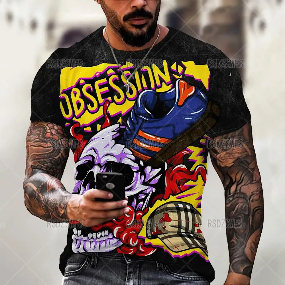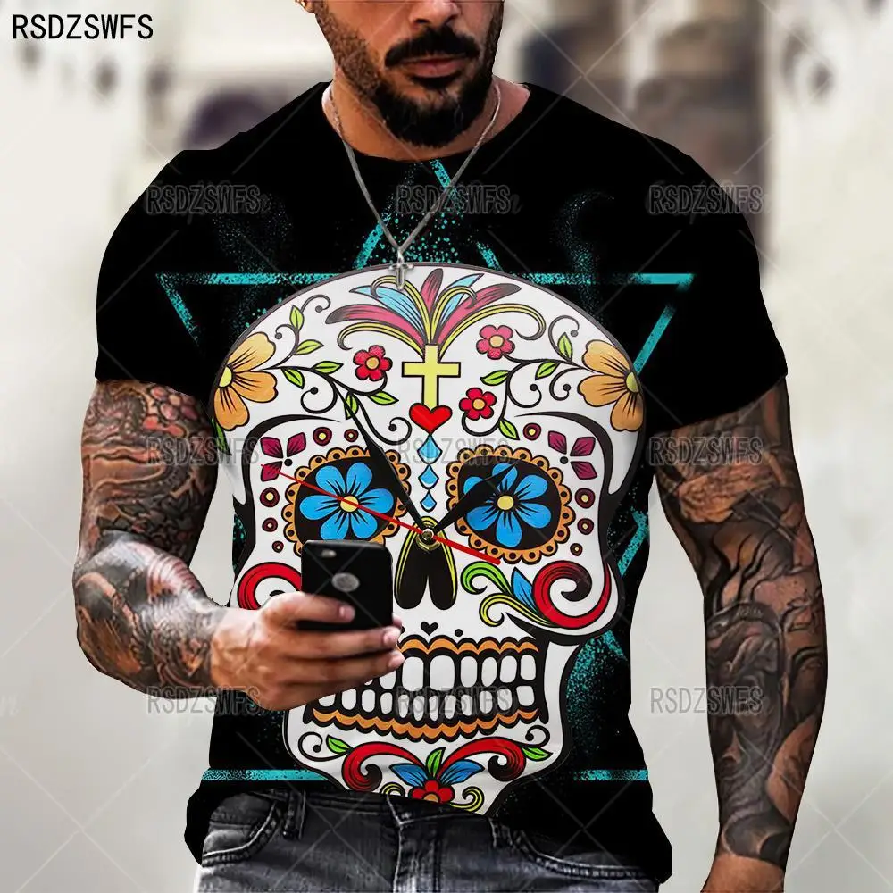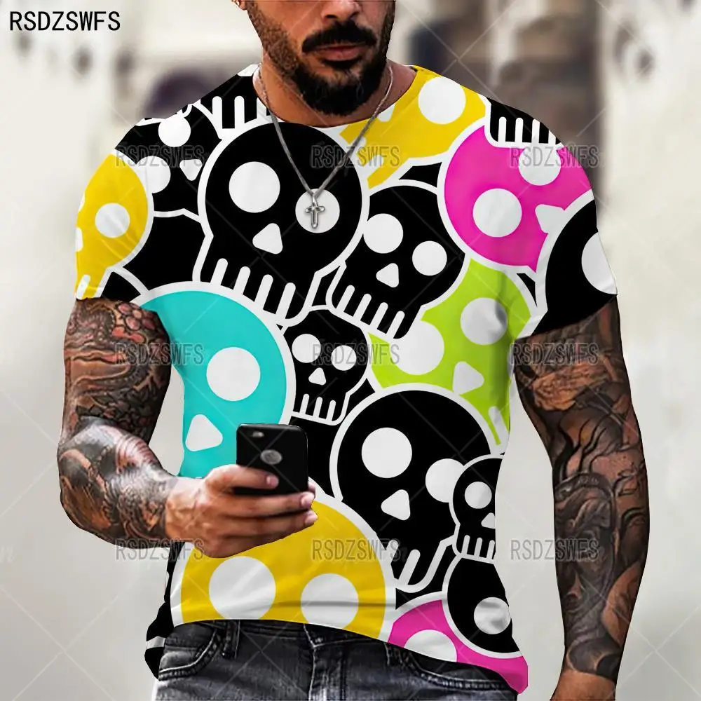 Футболка мужская оверсайз с круглым вырезом, Классическая тенниска с 3D-принтом черепа, модная повседневная майка, дышащий Топ, лето