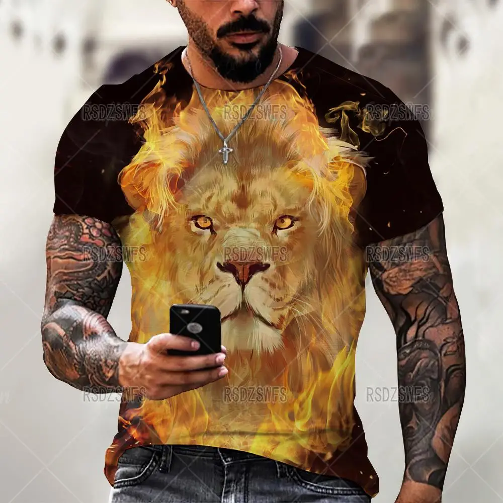 Футболка мужская оверсайз с круглым вырезом, модная тенниска с 3D принтом льва, Стильная майка с коротким рукавом, уличная одежда в стиле Харадзюку, лето
