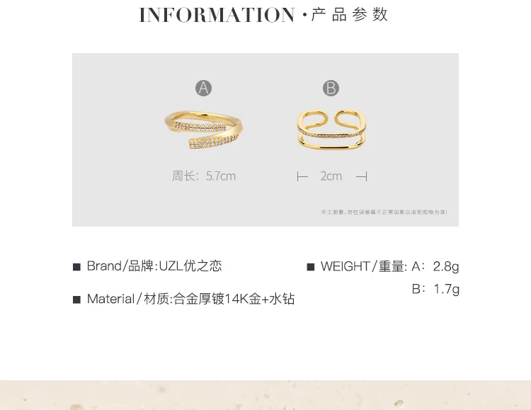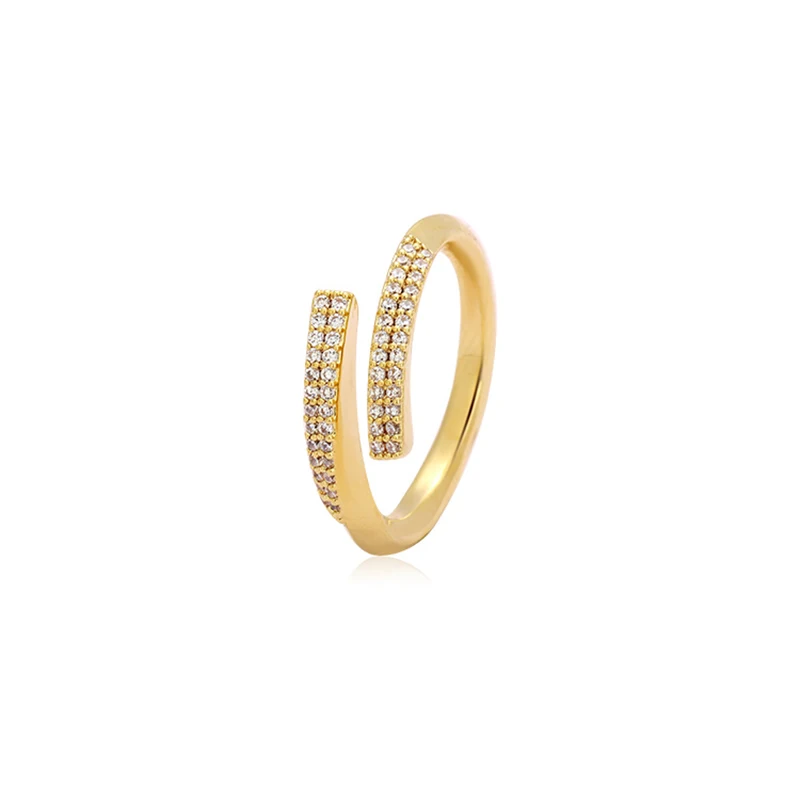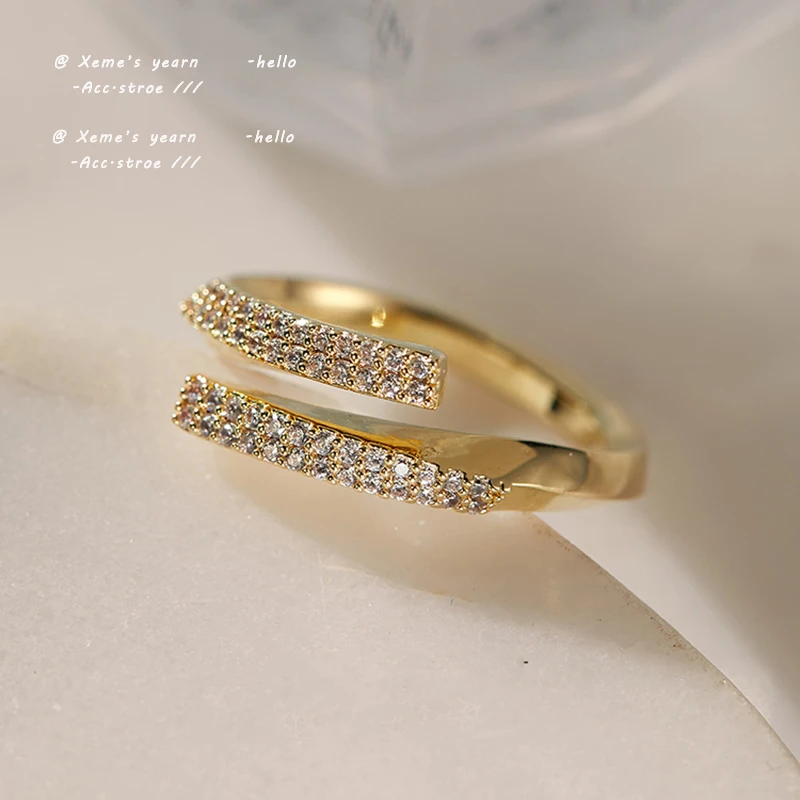 Новинка 2021, простое геометрическое Открытое кольцо с микро инкрустированным цирконием золотого цвета, модные аксессуары для костюма в Корейском стиле, темпераментные ювелирные изделия для девушек и женщин