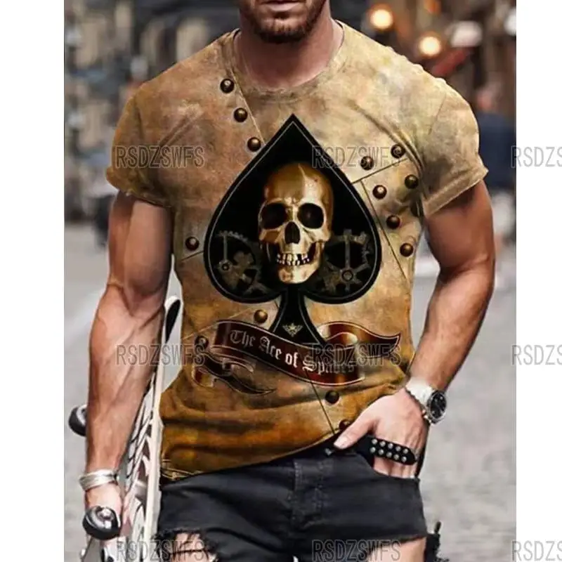 Ужасная Мужская футболка с принтом черепа пик покер Повседневная летняя Мужская очень большая футболка 2021 комфортная дышащая футболка Топы 110-5XL