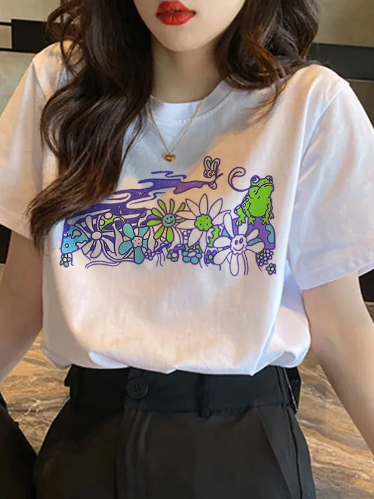 Футболка женская хлопковая с принтом лягушки и графическим принтом