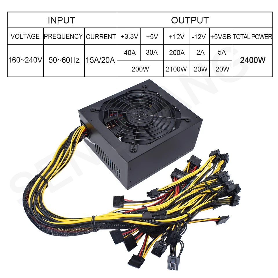 Блок питания SENLIFANG для майнинга ATX мощностью 2400 Вт, Толстая ...