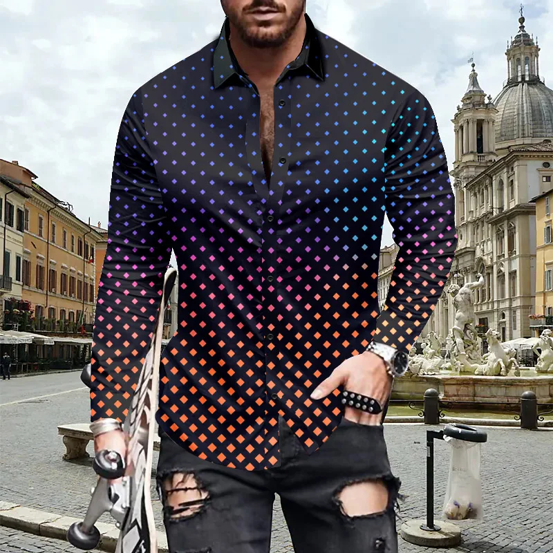 Мужская Повседневная рубашка на пуговицах, Кардиган с длинным рукавом и геометрическим принтом, осень 2021