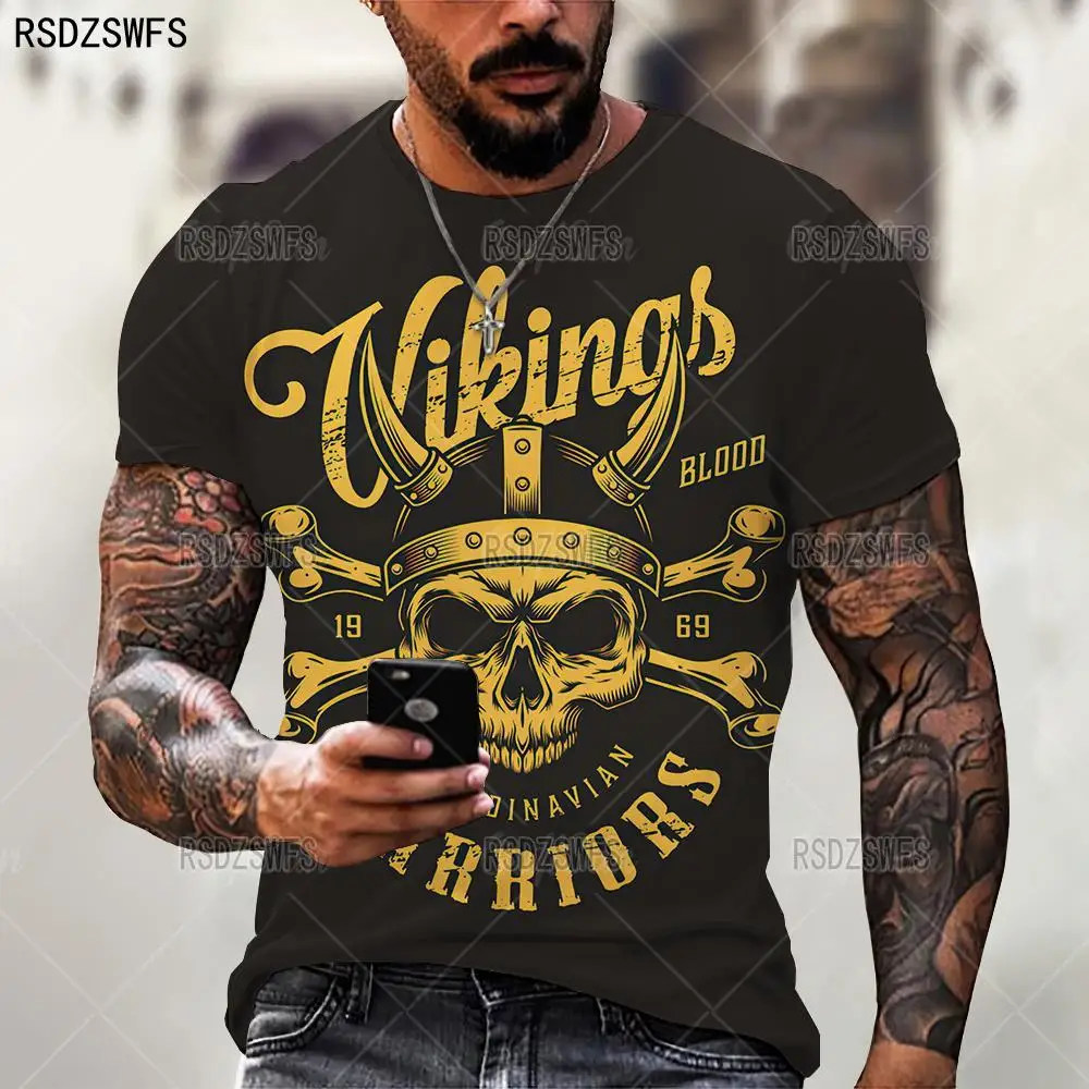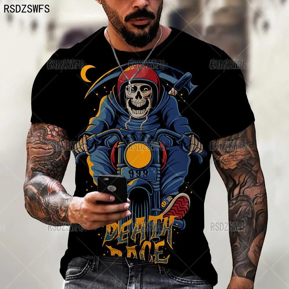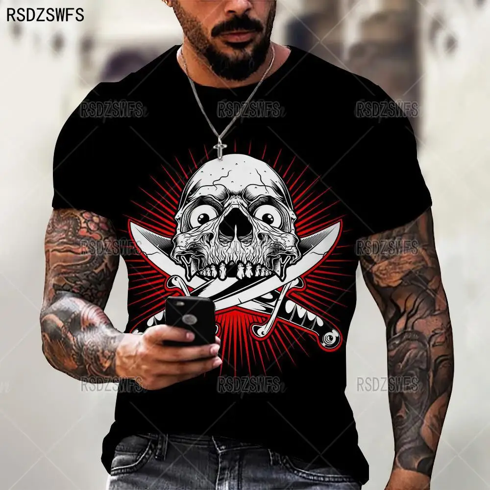 Новинка 2021, Мужская модная футболка с 3D-принтом черепа, летняя п...